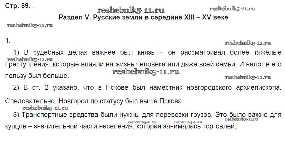 Готовая домашняя работа с ответами по Истории за 6 класс Кочегаров Рабочая тетрадь Инновационная школа Русское слово 2017 ФГОС - Раздел 5. Русские земли в середине XIII-XV веке стр. 89
