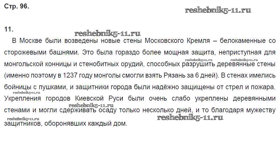 Готовая домашняя работа с ответами по Истории за 6 класс Кочегаров Рабочая тетрадь Инновационная школа Русское слово 2017 ФГОС - Раздел 5. Русские земли в середине XIII-XV веке стр. 96