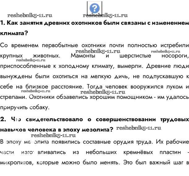 Готовая домашняя работа с ответами по Истории за 6 класс Андреев, Федоров Учебник Вертикаль Дрофа 2016 - §1. Древние люди на территории нашей страны стр.11
