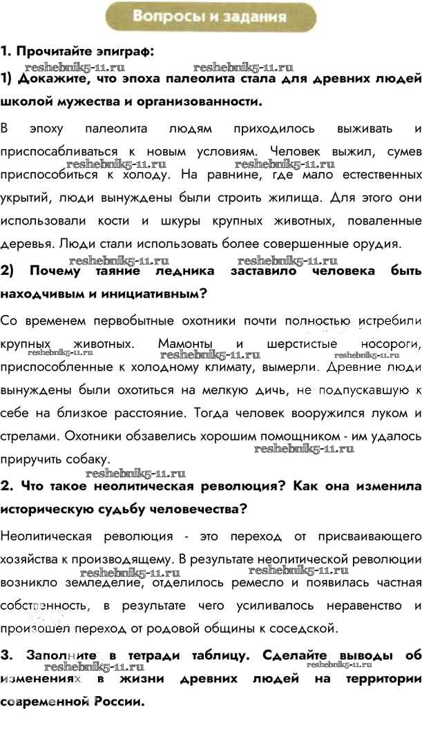 Готовая домашняя работа с ответами по Истории за 6 класс Андреев, Федоров Учебник Вертикаль Дрофа 2016 - §1. Древние люди на территории нашей страны стр.15