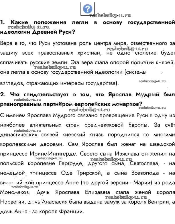 Готовая домашняя работа с ответами по Истории за 6 класс Андреев, Федоров Учебник Вертикаль Дрофа 2016 - §8. Расцвет Древнерусского государства при Ярославе Мудром стр.73
