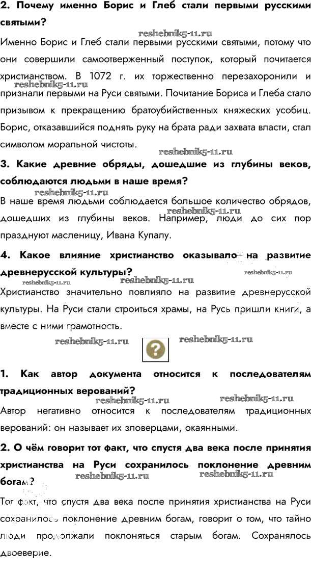 Готовая домашняя работа с ответами по Истории за 6 класс Андреев, Федоров Учебник Вертикаль Дрофа 2016 - §11. Образ жизни и духовный мир населения Руси стр.98