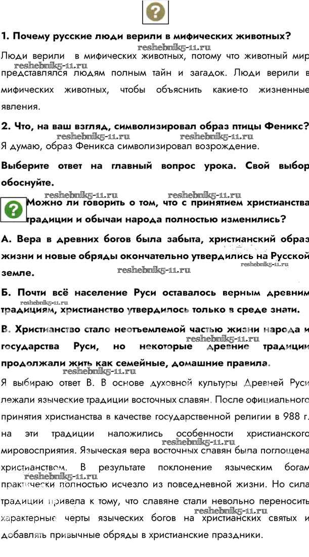 Готовая домашняя работа с ответами по Истории за 6 класс Андреев, Федоров Учебник Вертикаль Дрофа 2016 - §11. Образ жизни и духовный мир населения Руси стр.99