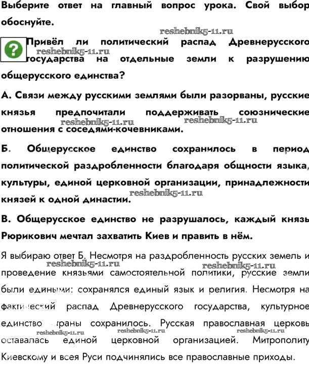 Готовая домашняя работа с ответами по Истории за 6 класс Андреев, Федоров Учебник Вертикаль Дрофа 2016 - §13. Распад Древнерусского государства стр.119
