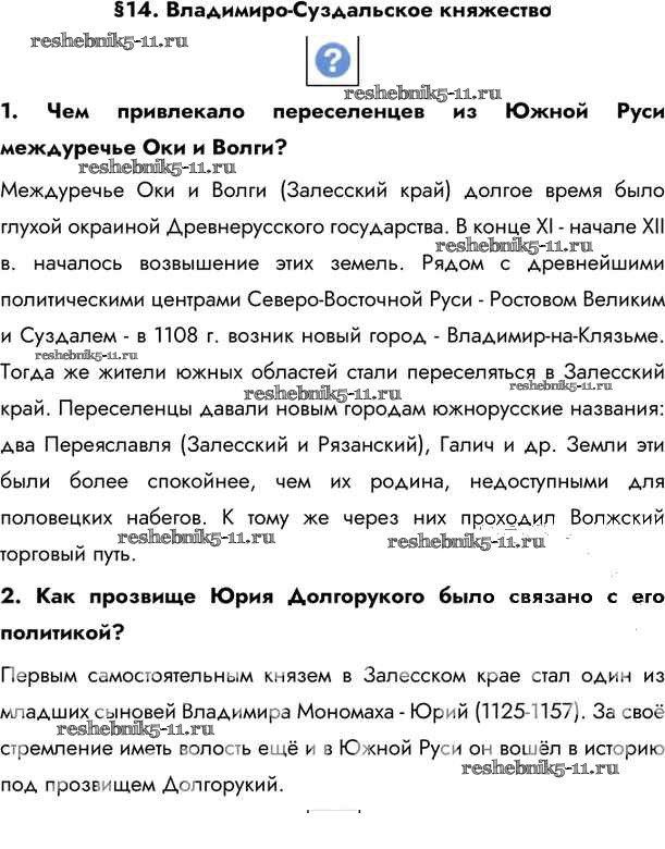 Готовая домашняя работа с ответами по Истории за 6 класс Андреев, Федоров Учебник Вертикаль Дрофа 2016 - §14. Владимиро-Суздальское княжество стр.121