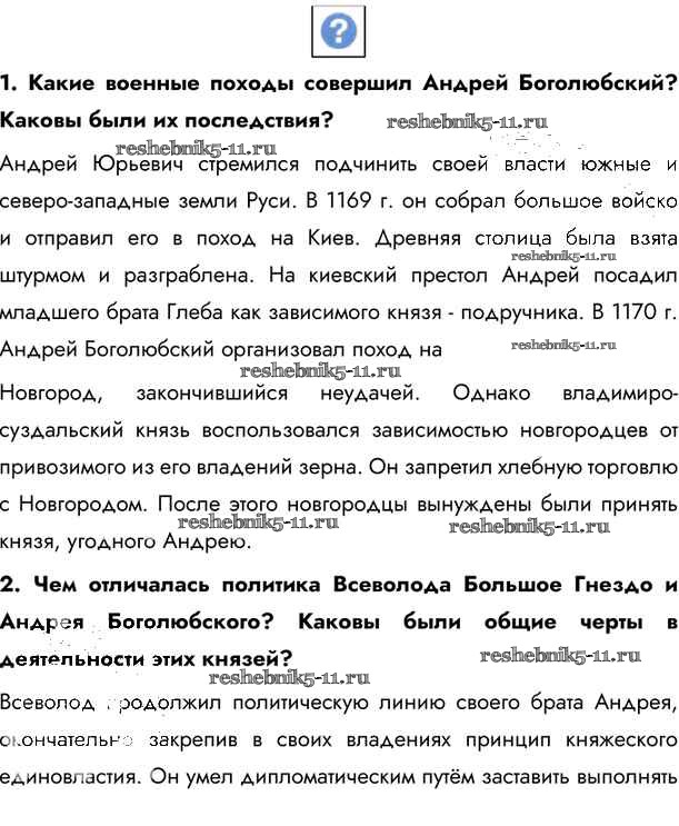 Готовая домашняя работа с ответами по Истории за 6 класс Андреев, Федоров Учебник Вертикаль Дрофа 2016 - §14. Владимиро-Суздальское княжество стр.124
