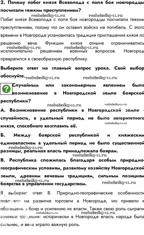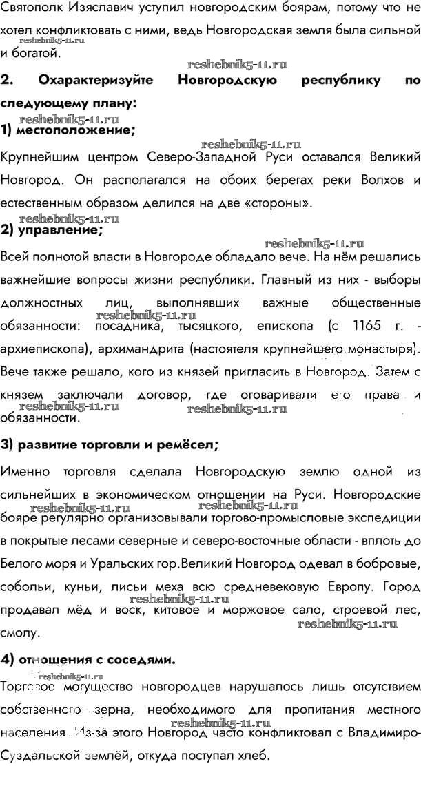 Готовая домашняя работа с ответами по Истории за 6 класс Андреев, Федоров Учебник Вертикаль Дрофа 2016 - §15. Новгородская боярская республика стр.135