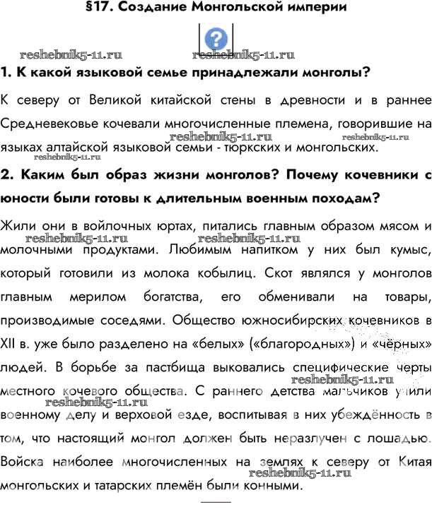 Готовая домашняя работа с ответами по Истории за 6 класс Андреев, Федоров Учебник Вертикаль Дрофа 2016 - §17. Создание Монгольской империи стр.150