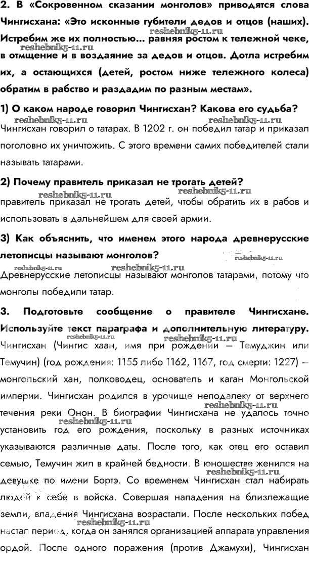 Готовая домашняя работа с ответами по Истории за 6 класс Андреев, Федоров Учебник Вертикаль Дрофа 2016 - §17. Создание Монгольской империи стр.154