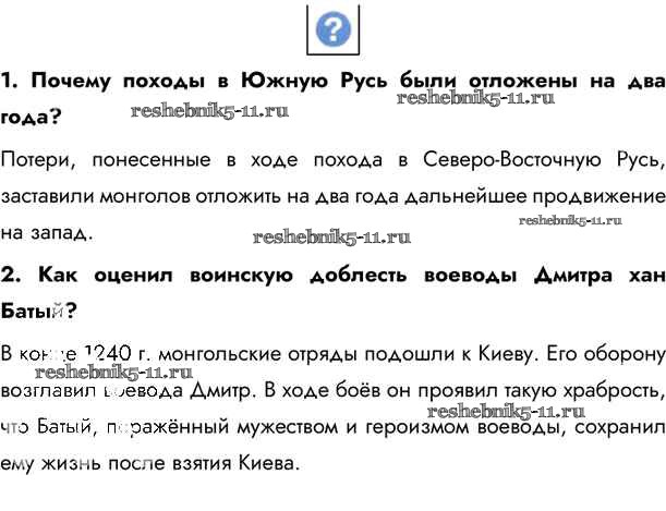 Готовая домашняя работа с ответами по Истории за 6 класс Андреев, Федоров Учебник Вертикаль Дрофа 2016 - §18. Походы Батыя стр.160