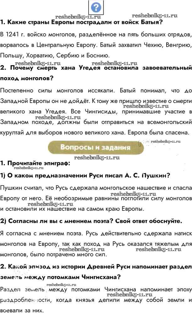 Готовая домашняя работа с ответами по Истории за 6 класс Андреев, Федоров Учебник Вертикаль Дрофа 2016 - §18. Походы Батыя стр.161