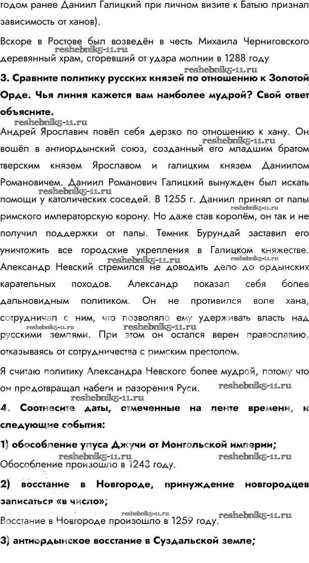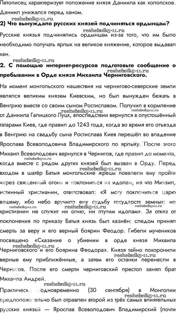 Готовая домашняя работа с ответами по Истории за 6 класс Андреев, Федоров Учебник Вертикаль Дрофа 2016 - §20. Золотая Орда и русские земли стр.178