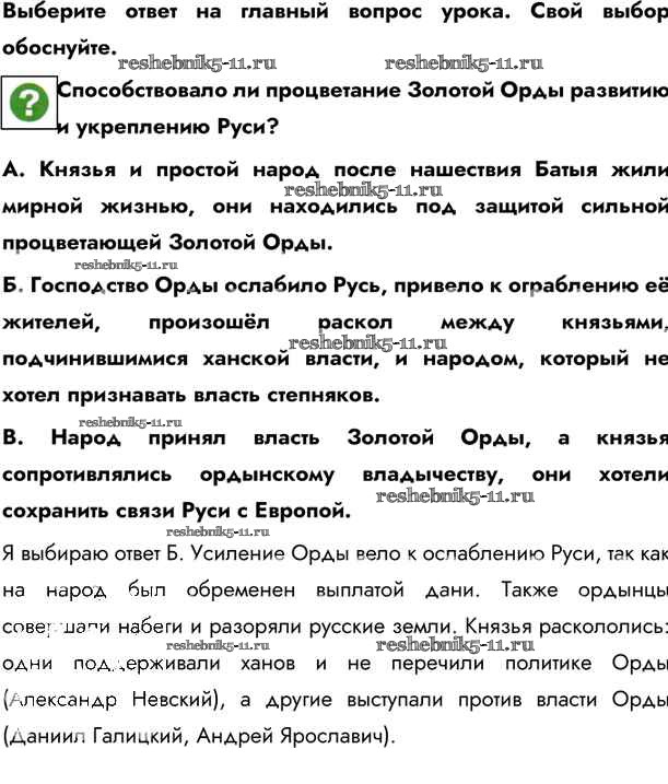 Готовая домашняя работа с ответами по Истории за 6 класс Андреев, Федоров Учебник Вертикаль Дрофа 2016 - §20. Золотая Орда и русские земли стр.179