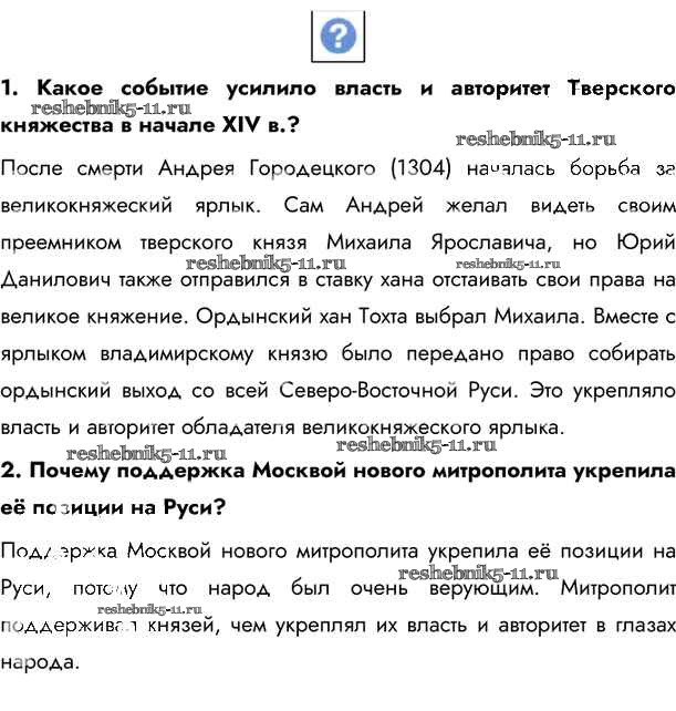 Готовая домашняя работа с ответами по Истории за 6 класс Андреев, Федоров Учебник Вертикаль Дрофа 2016 - §21. Борьба Москвы и Твери стр.184