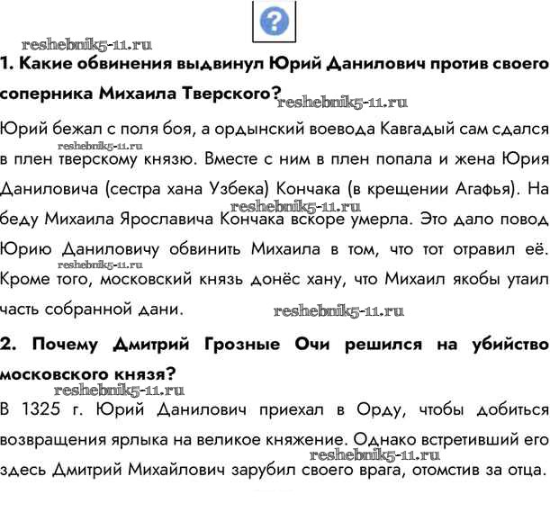 Готовая домашняя работа с ответами по Истории за 6 класс Андреев, Федоров Учебник Вертикаль Дрофа 2016 - §21. Борьба Москвы и Твери стр.185