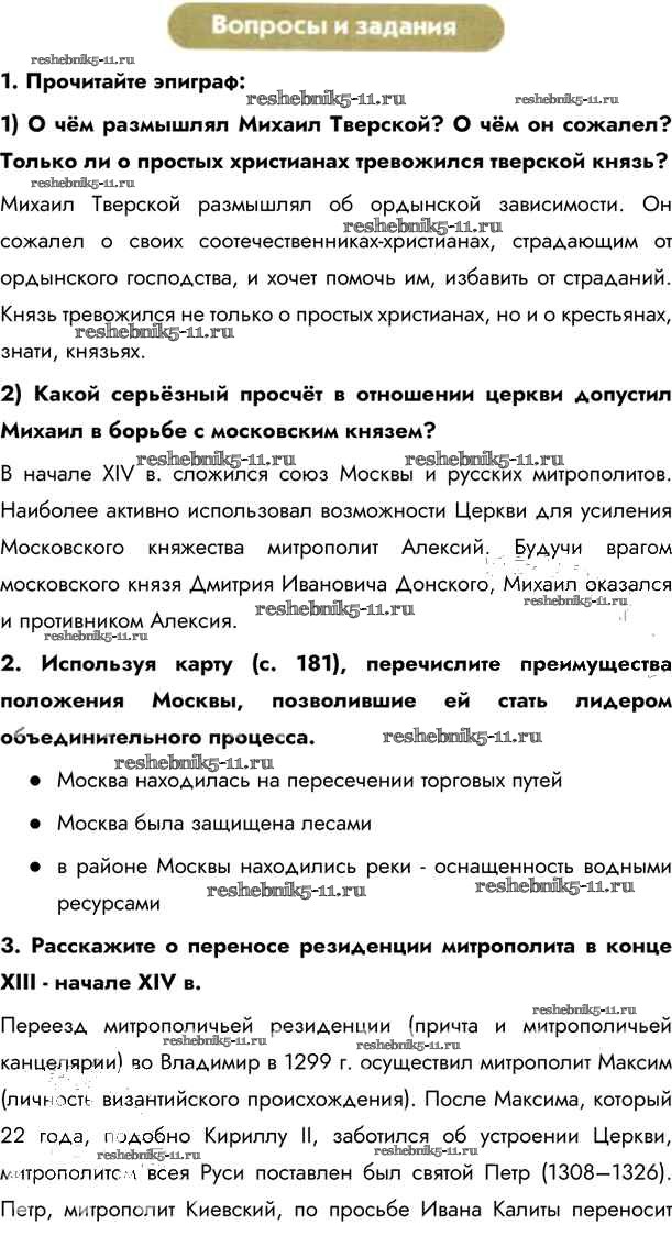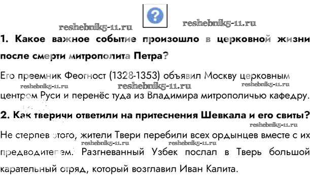 Готовая домашняя работа с ответами по Истории за 6 класс Андреев, Федоров Учебник Вертикаль Дрофа 2016 - §21. Борьба Москвы и Твери стр.187