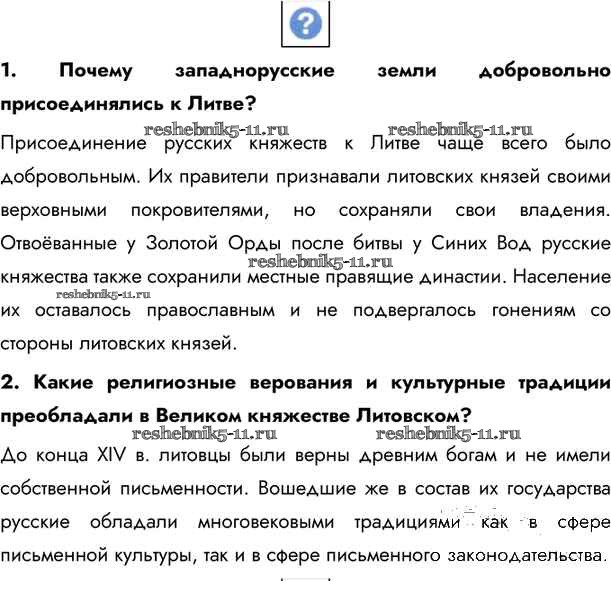 Готовая домашняя работа с ответами по Истории за 6 класс Андреев, Федоров Учебник Вертикаль Дрофа 2016 - §22. Великое княжество Литовское и Русское стр.190