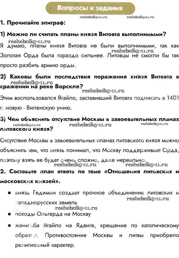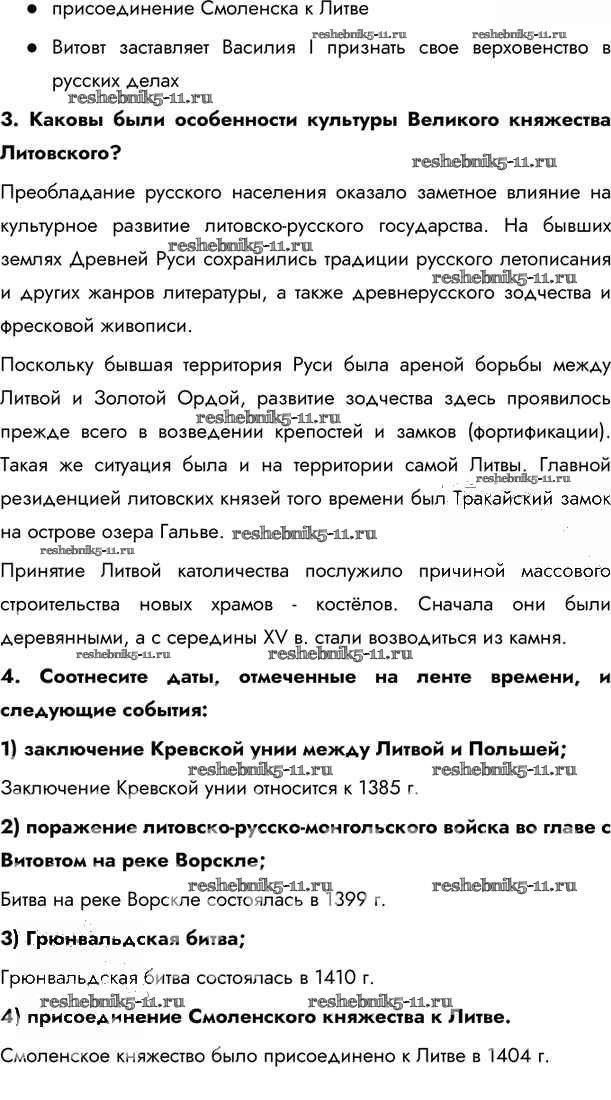 Готовая домашняя работа с ответами по Истории за 6 класс Андреев, Федоров Учебник Вертикаль Дрофа 2016 - §22. Великое княжество Литовское и Русское стр.196