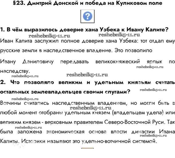 Готовая домашняя работа с ответами по Истории за 6 класс Андреев, Федоров Учебник Вертикаль Дрофа 2016 - §23. Дмитрий Донской и победа на Куликовом поле стр.198