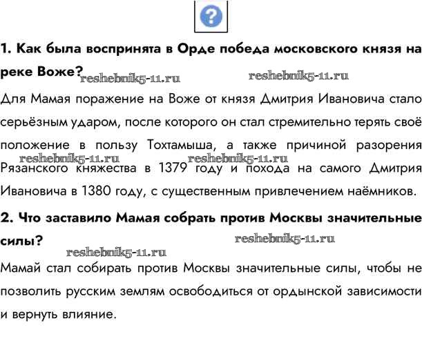 Готовая домашняя работа с ответами по Истории за 6 класс Андреев, Федоров Учебник Вертикаль Дрофа 2016 - §23. Дмитрий Донской и победа на Куликовом поле стр.201