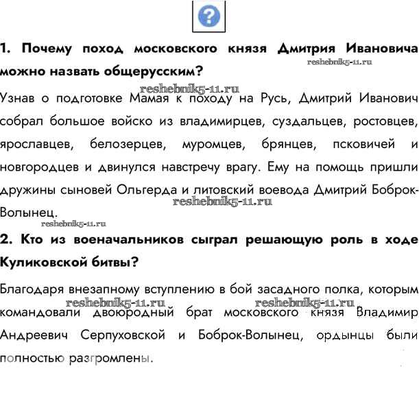 Готовая домашняя работа с ответами по Истории за 6 класс Андреев, Федоров Учебник Вертикаль Дрофа 2016 - §23. Дмитрий Донской и победа на Куликовом поле стр.202