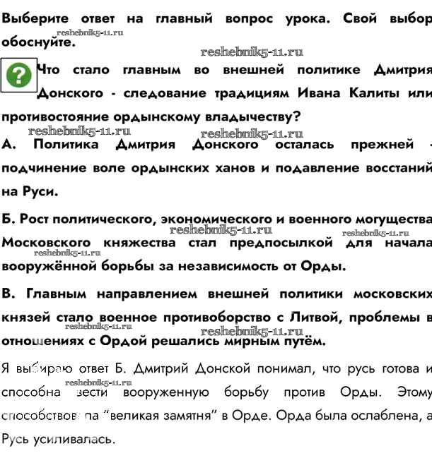 Готовая домашняя работа с ответами по Истории за 6 класс Андреев, Федоров Учебник Вертикаль Дрофа 2016 - §23. Дмитрий Донской и победа на Куликовом поле стр.206