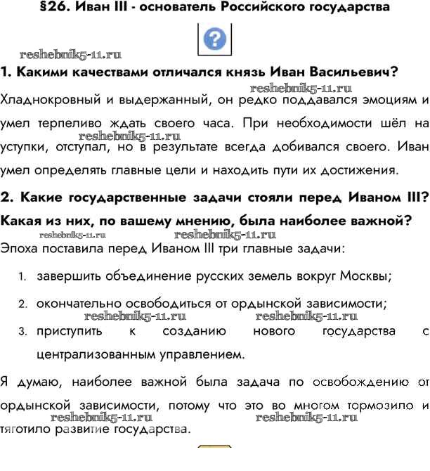 Готовая домашняя работа с ответами по Истории за 6 класс Андреев, Федоров Учебник Вертикаль Дрофа 2016 - §26. Иван III — основатель Российского государства стр.227