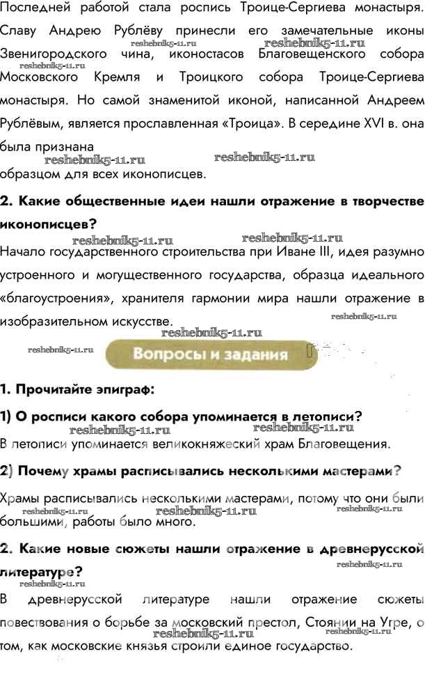 Готовая домашняя работа с ответами по Истории за 6 класс Андреев, Федоров Учебник Вертикаль Дрофа 2016 - §30. Достижения российской культуры стр.264