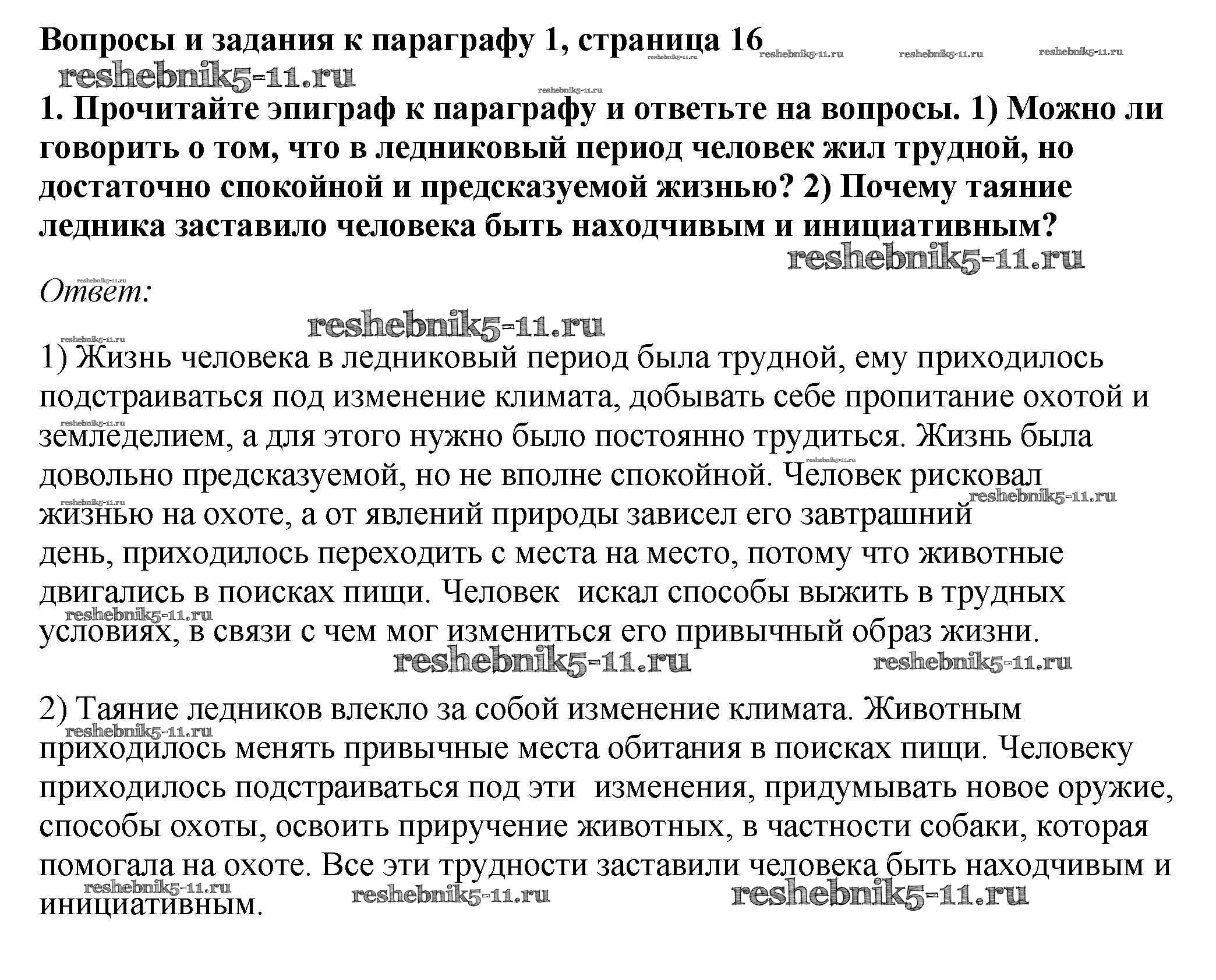 Готовая домашняя работа с ответами по Истории за 6 класс Андреев, Федоров Учебник Вертикаль Дрофа 2016 - §1. Древнейшие люди на территории Восточно - Европейской равнины стр.16