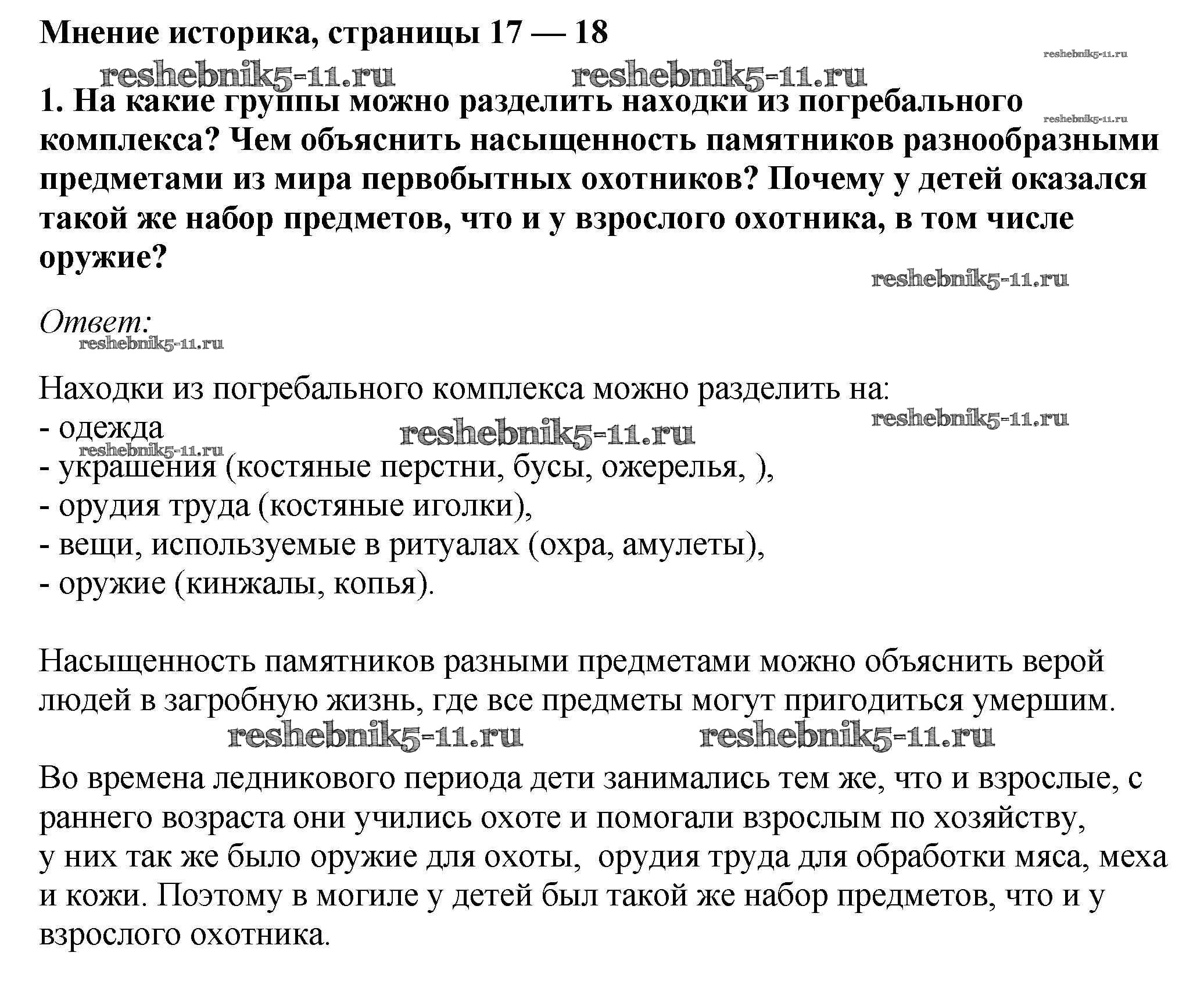 Готовая домашняя работа с ответами по Истории за 6 класс Андреев, Федоров Учебник Вертикаль Дрофа 2016 - §1. Древнейшие люди на территории Восточно - Европейской равнины стр.17
