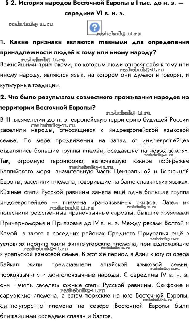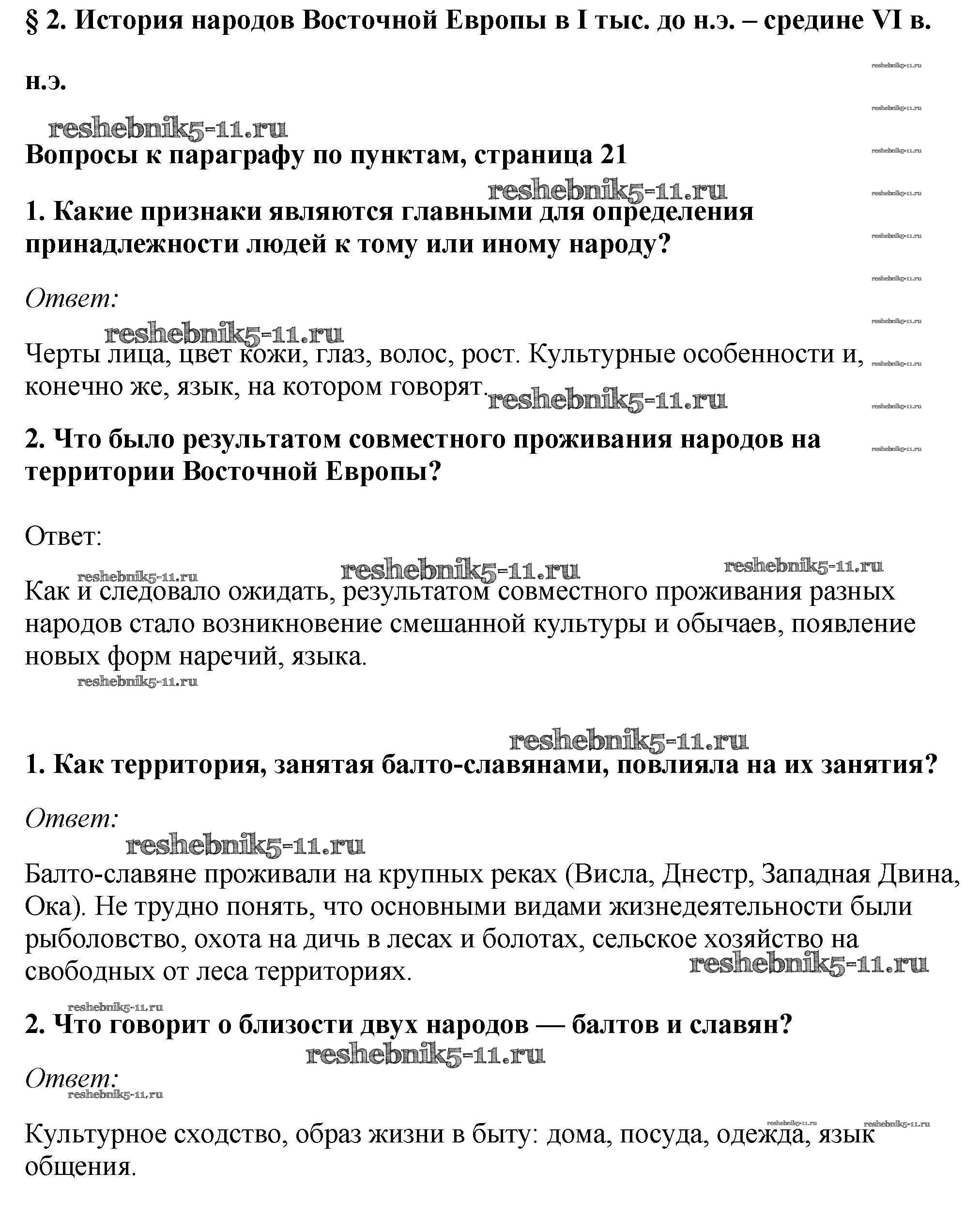 Готовая домашняя работа с ответами по Истории за 6 класс Андреев, Федоров Учебник Вертикаль Дрофа 2016 - §2. История народов Восточной Европы в I тыс. до н.э. – средине VI в. н.э. стр.21