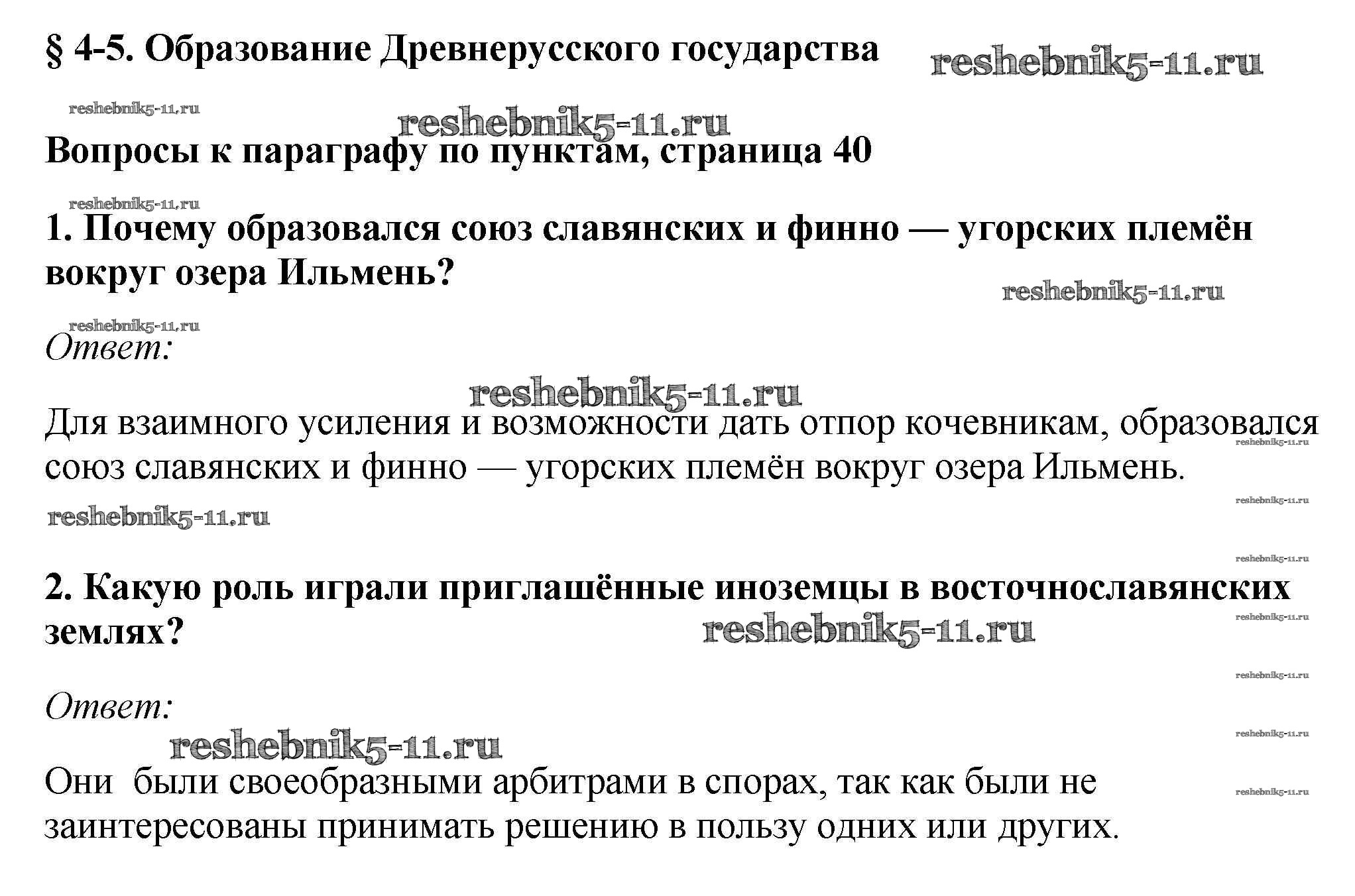 Готовая домашняя работа с ответами по Истории за 6 класс Андреев, Федоров Учебник Вертикаль Дрофа 2016 - §4-5. Образование Древнерусского государства стр.40