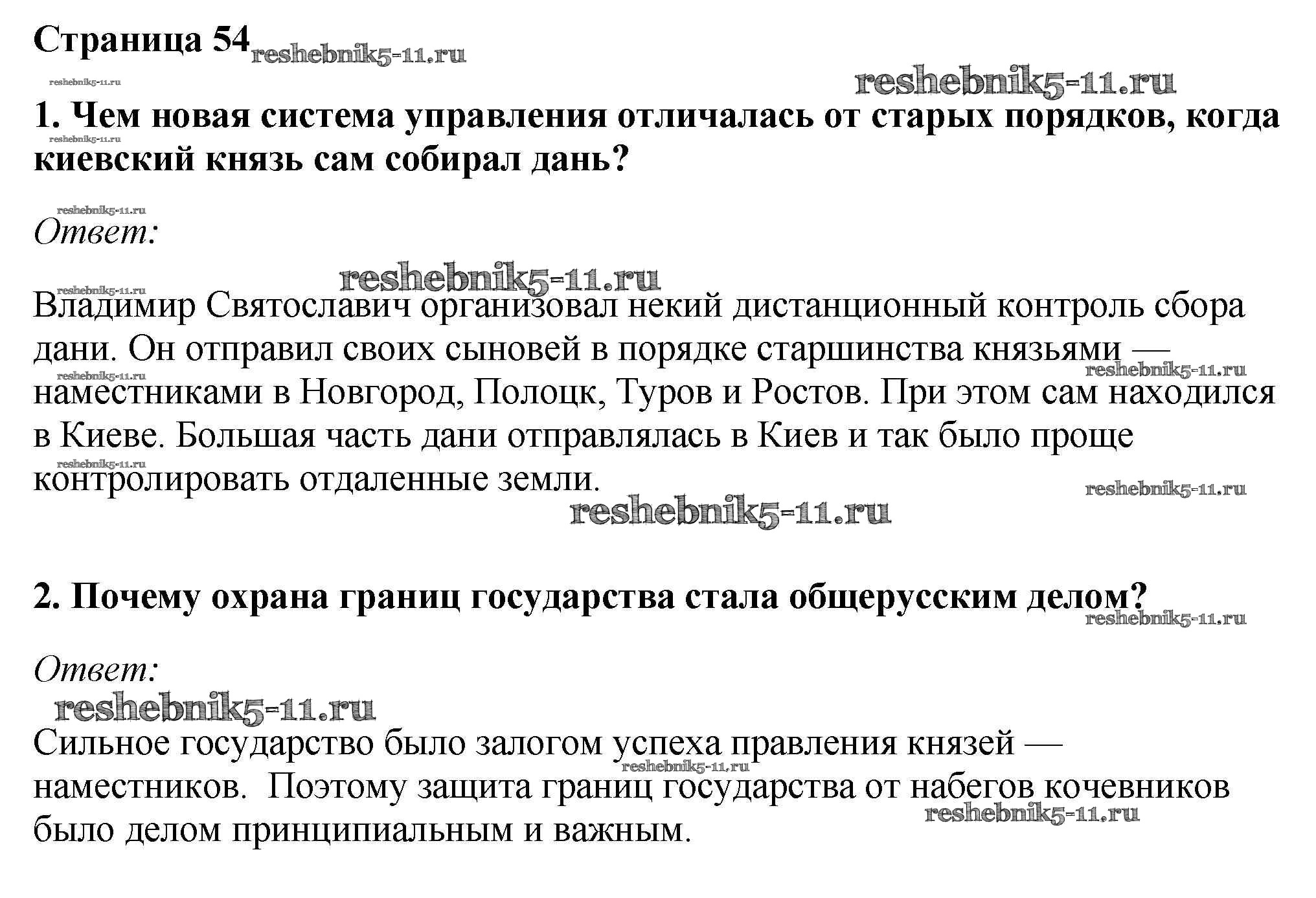 Готовая домашняя работа с ответами по Истории за 6 класс Андреев, Федоров Учебник Вертикаль Дрофа 2016 - §6-7. Русь в конце X первой половине XI века. Становление государства стр.54