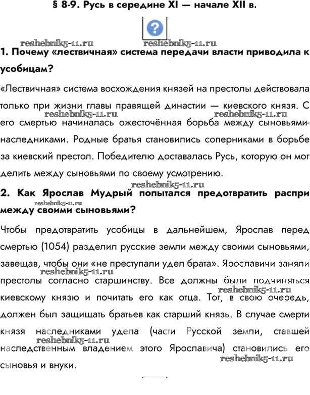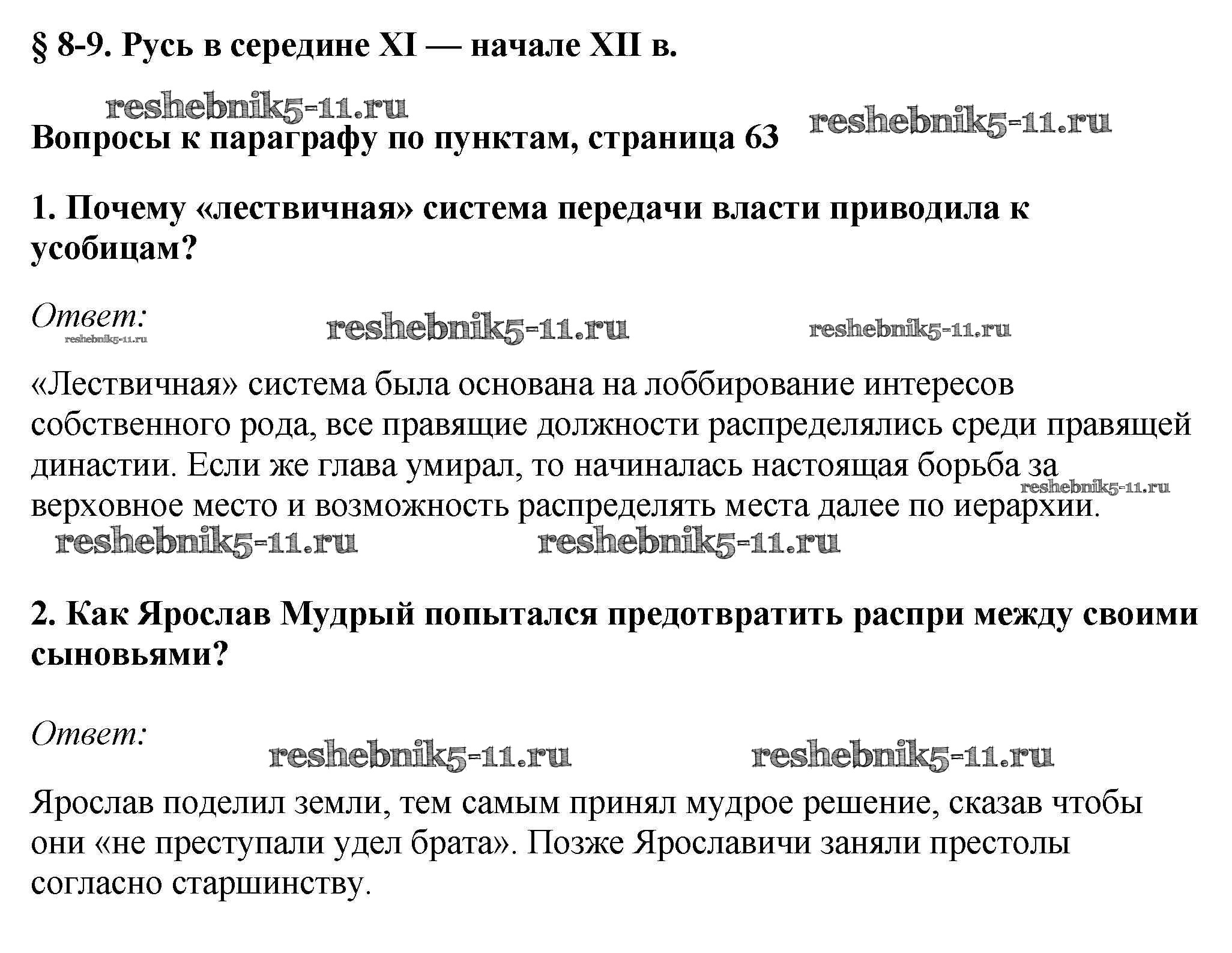 Готовая домашняя работа с ответами по Истории за 6 класс Андреев, Федоров Учебник Вертикаль Дрофа 2016 - §8-9. Русь в середине XI — начале XII в. стр.63