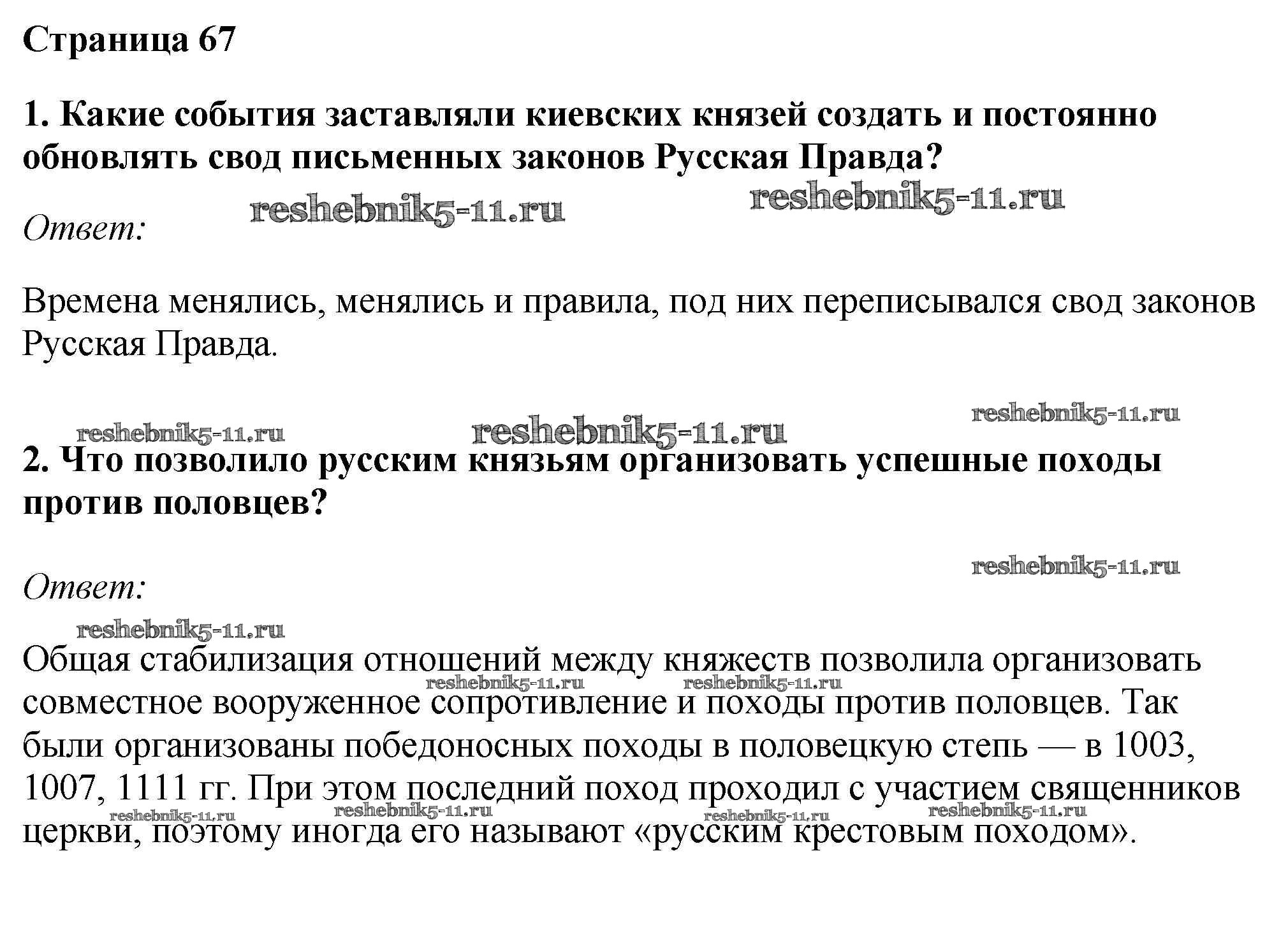 Готовая домашняя работа с ответами по Истории за 6 класс Андреев, Федоров Учебник Вертикаль Дрофа 2016 - §8-9. Русь в середине XI — начале XII в. стр.67