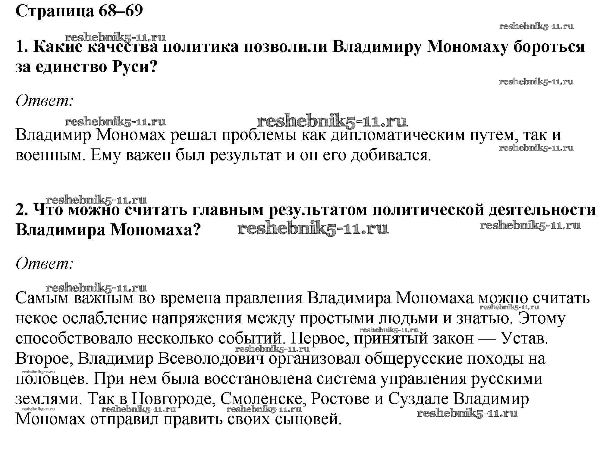Готовая домашняя работа с ответами по Истории за 6 класс Андреев, Федоров Учебник Вертикаль Дрофа 2016 - §8-9. Русь в середине XI — начале XII в. стр.68