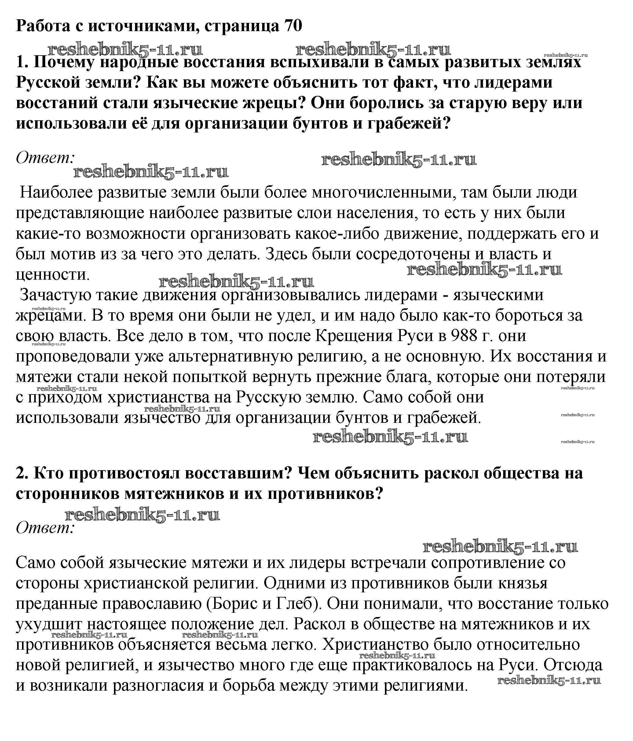 Готовая домашняя работа с ответами по Истории за 6 класс Андреев, Федоров Учебник Вертикаль Дрофа 2016 - §8-9. Русь в середине XI — начале XII в. стр.70