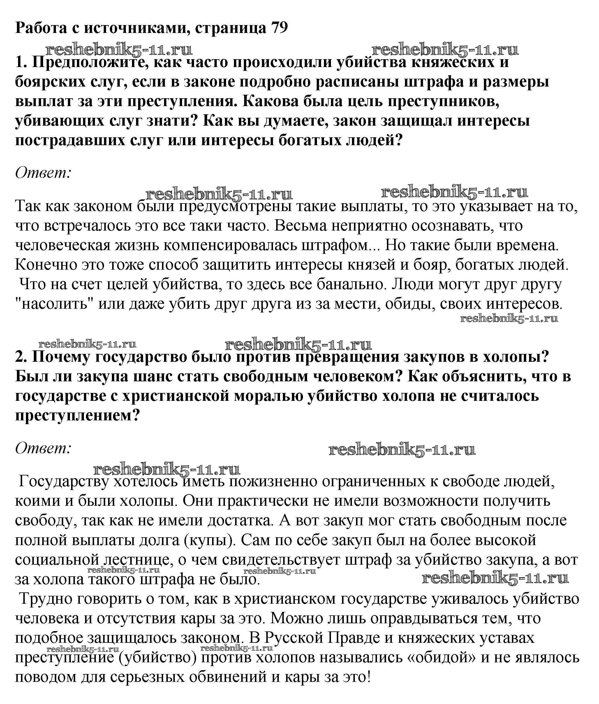 Готовая домашняя работа с ответами по Истории за 6 класс Андреев, Федоров Учебник Вертикаль Дрофа 2016 - §10. Общественный строй Древней Руси стр.79