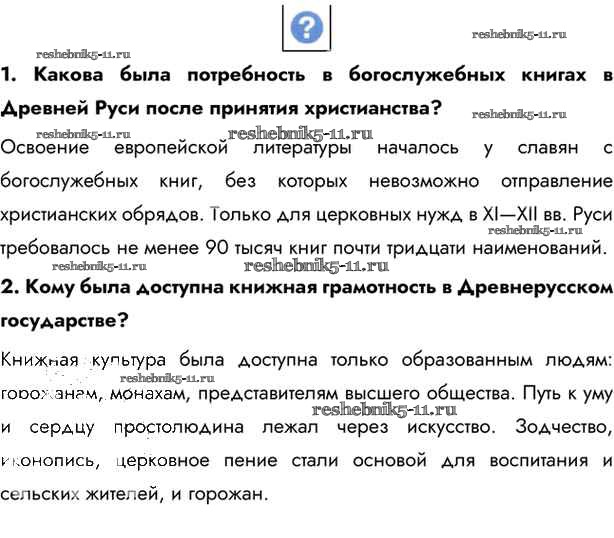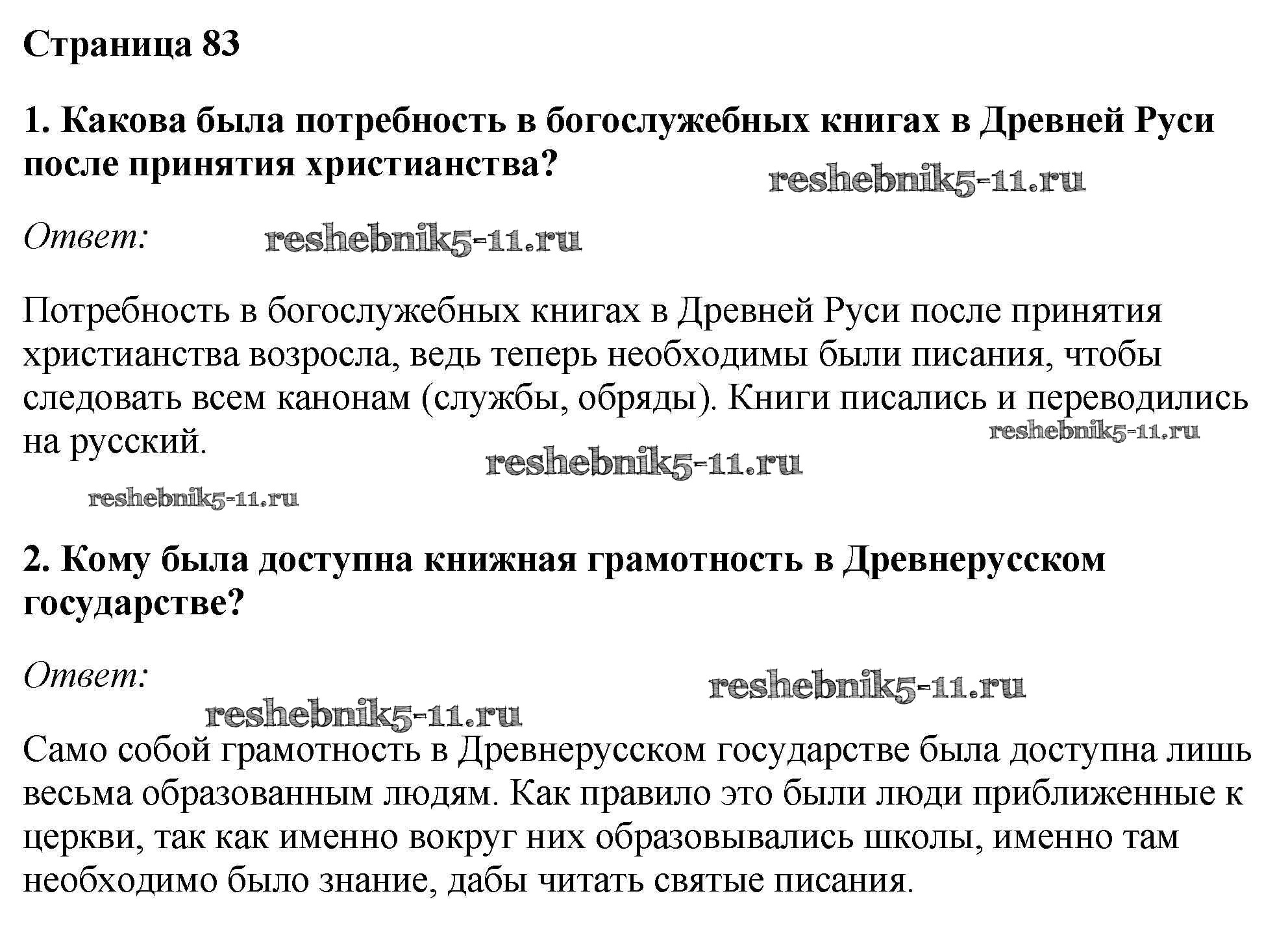 Готовая домашняя работа с ответами по Истории за 6 класс Андреев, Федоров Учебник Вертикаль Дрофа 2016 - §11-12. Древнерусская культура стр.83