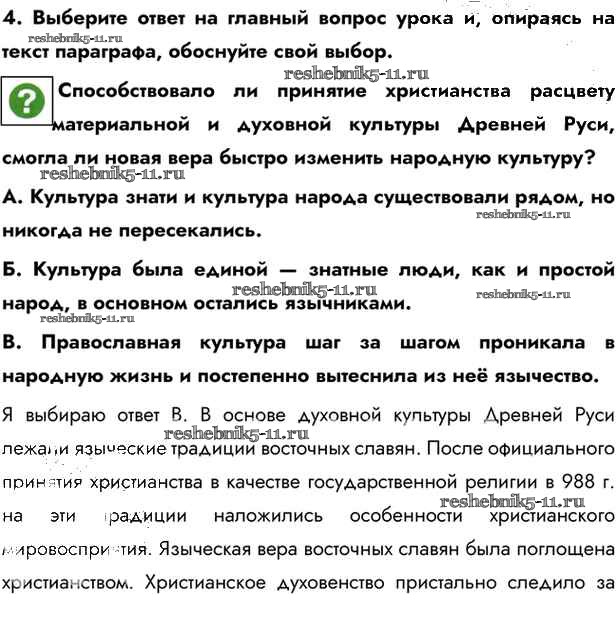 Готовая домашняя работа с ответами по Истории за 6 класс Андреев, Федоров Учебник Вертикаль Дрофа 2016 - §11-12. Древнерусская культура стр.86