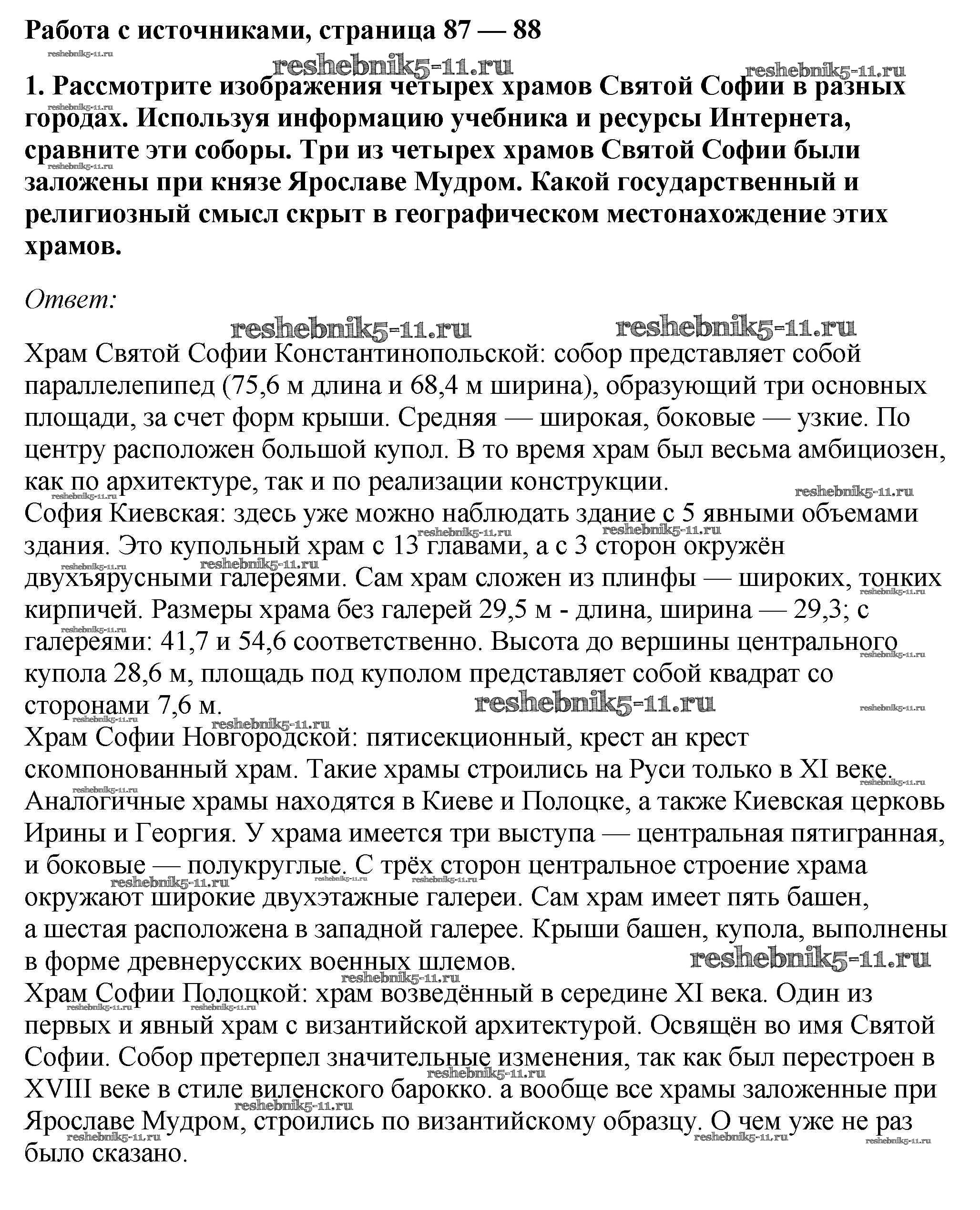 Готовая домашняя работа с ответами по Истории за 6 класс Андреев, Федоров Учебник Вертикаль Дрофа 2016 - §11-12. Древнерусская культура стр.87