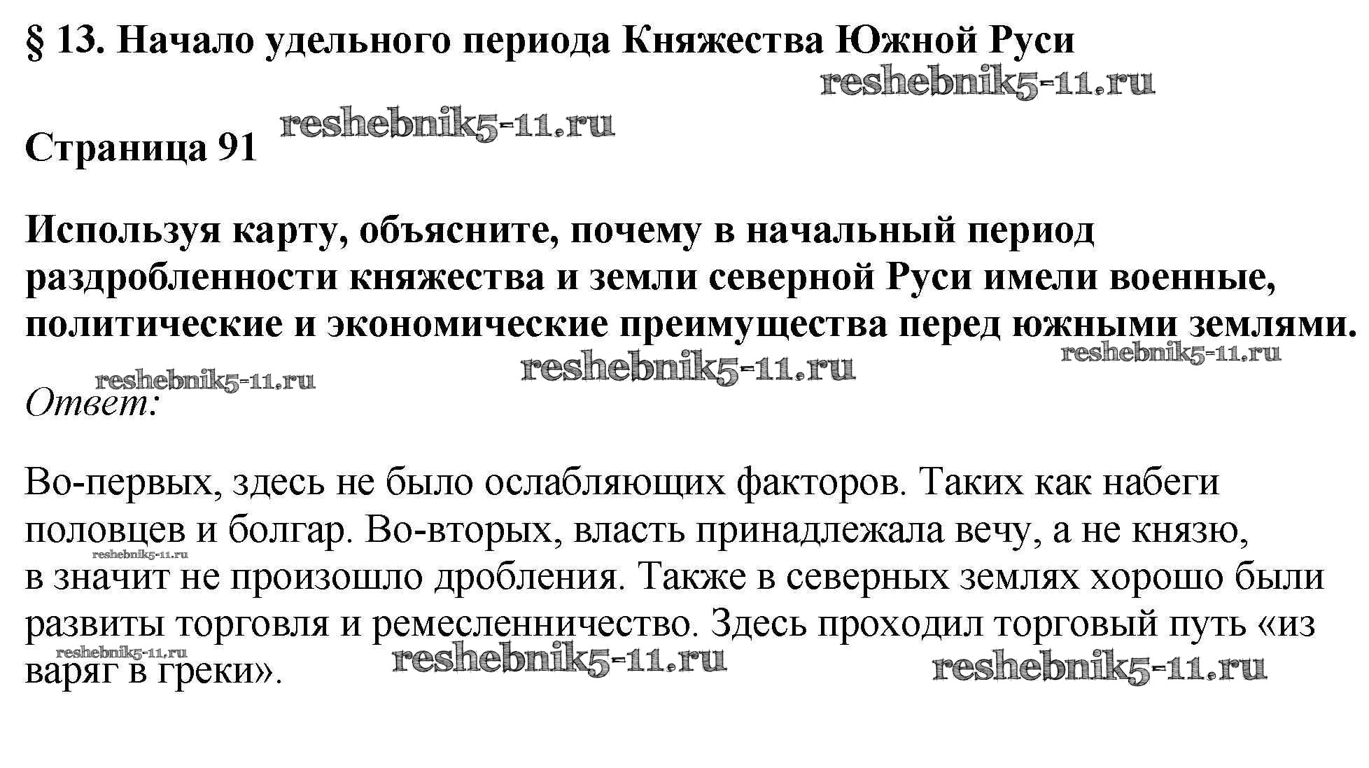 Готовая домашняя работа с ответами по Истории за 6 класс Андреев, Федоров Учебник Вертикаль Дрофа 2016 - §13. Начало удельного периода Княжества Южной Руси стр.91