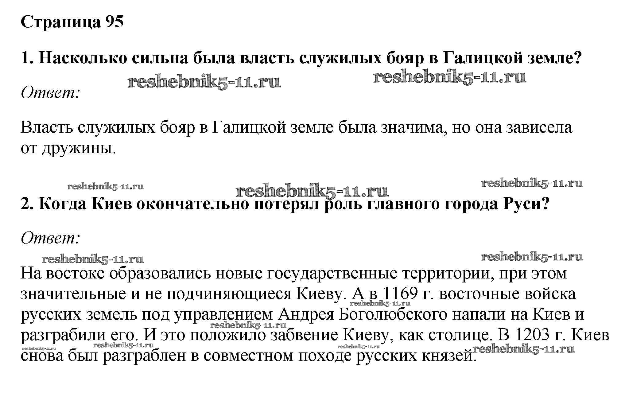 Готовая домашняя работа с ответами по Истории за 6 класс Андреев, Федоров Учебник Вертикаль Дрофа 2016 - §13. Начало удельного периода Княжества Южной Руси стр.95