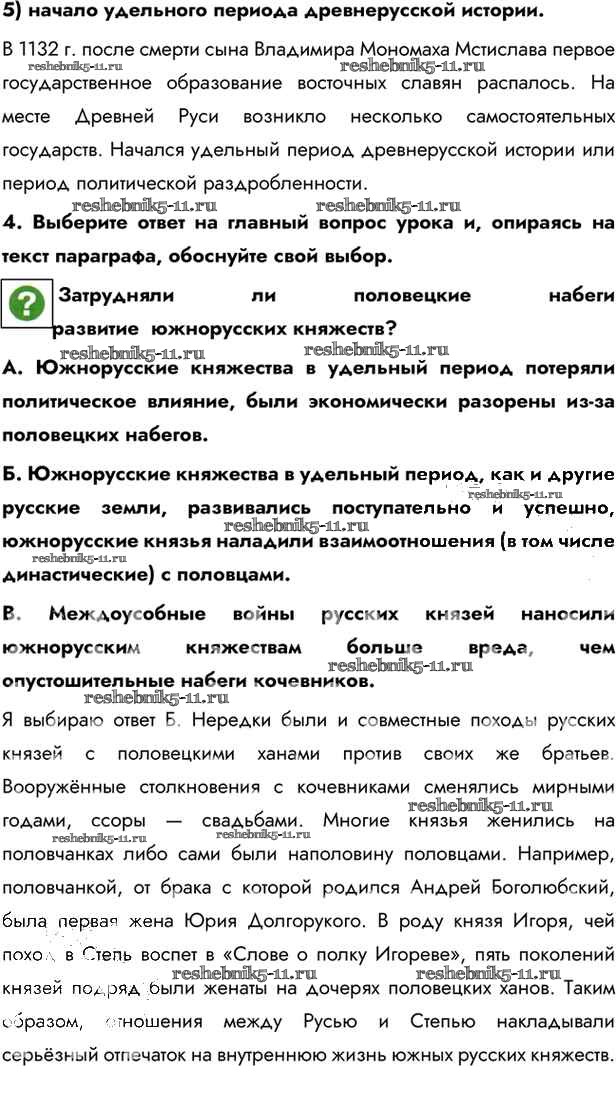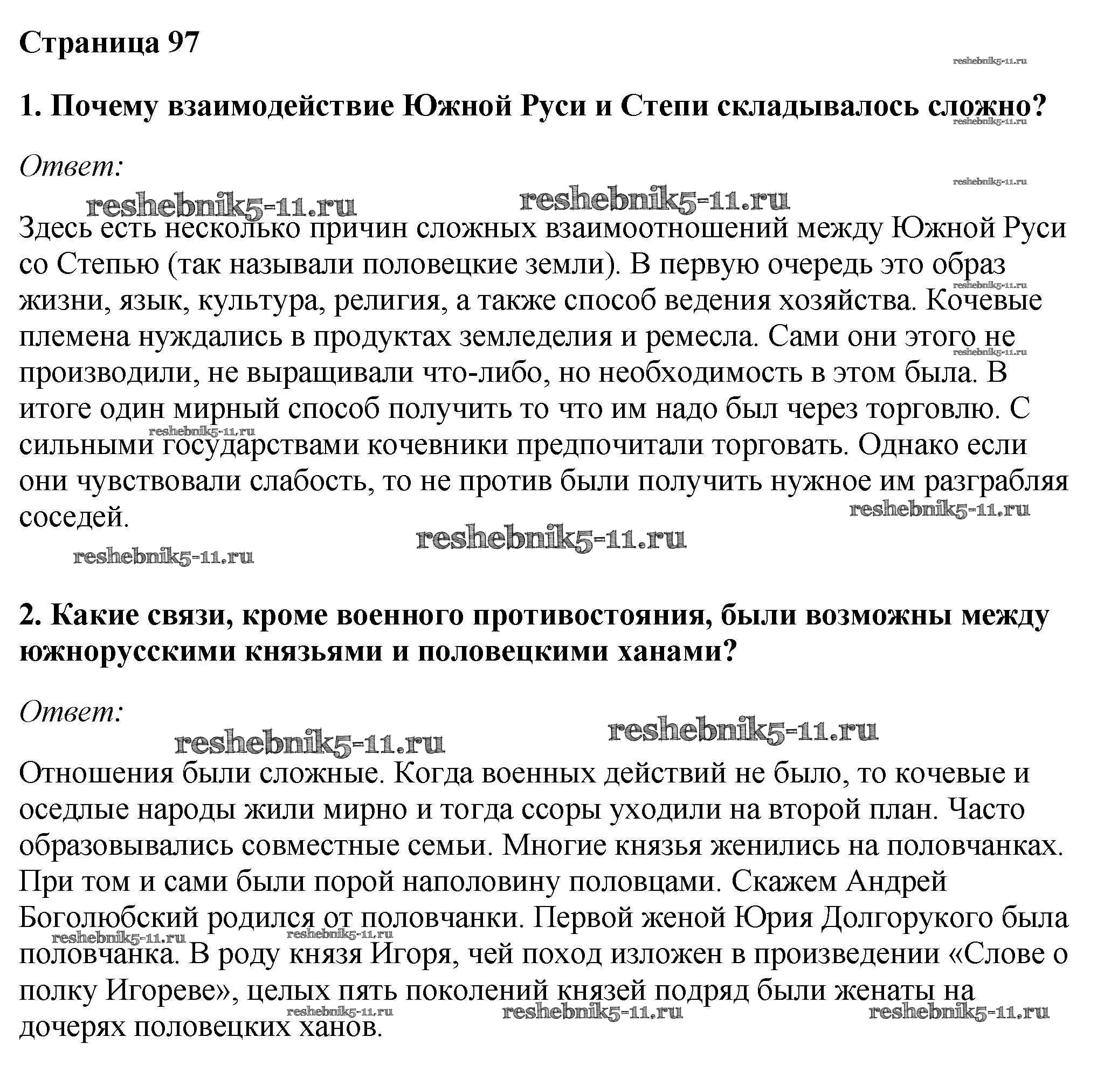 Готовая домашняя работа с ответами по Истории за 6 класс Андреев, Федоров Учебник Вертикаль Дрофа 2016 - §13. Начало удельного периода Княжества Южной Руси стр.97