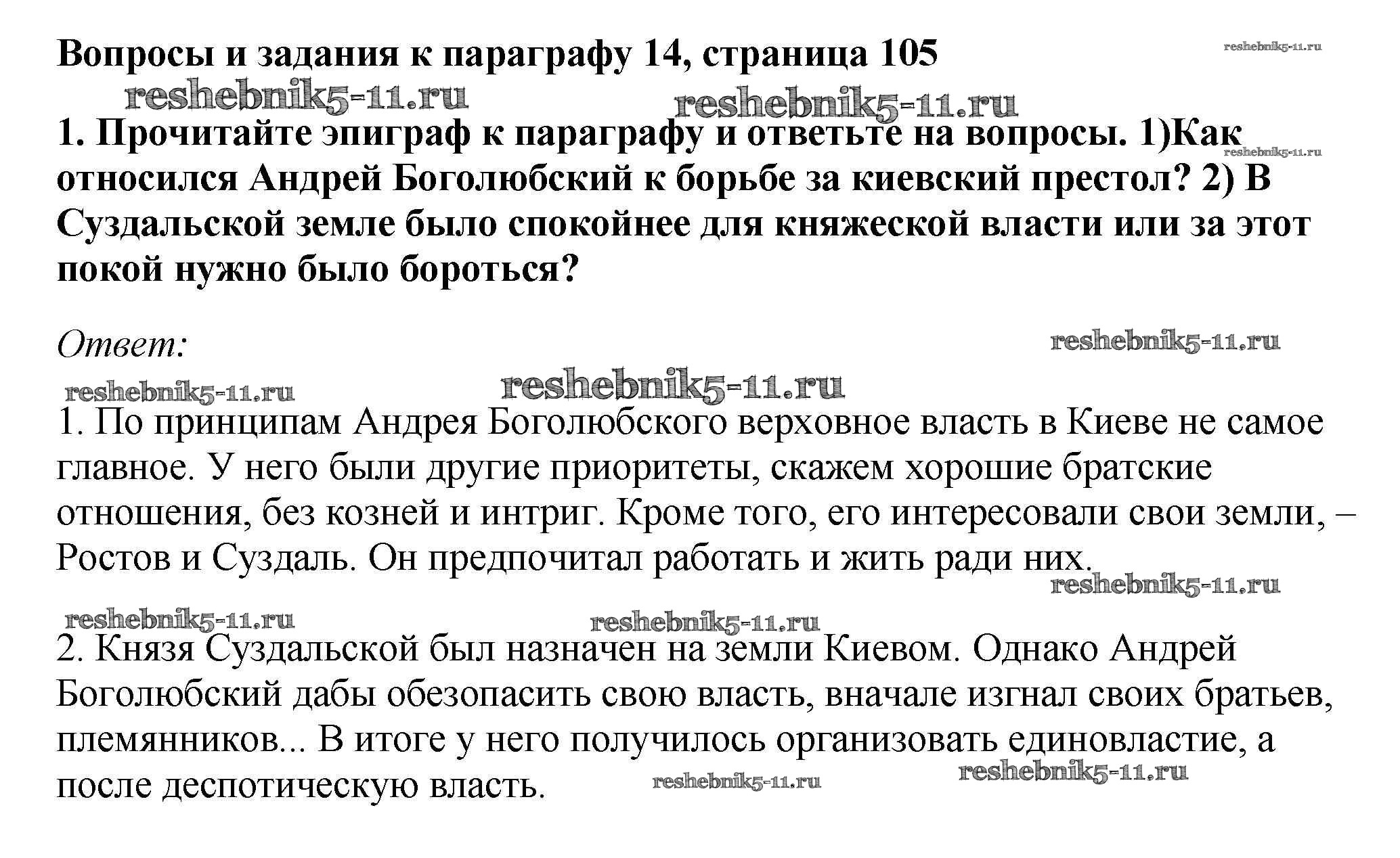 Готовая домашняя работа с ответами по Истории за 6 класс Андреев, Федоров Учебник Вертикаль Дрофа 2016 - §14. Княжества Северо - Восточной Руси стр.105