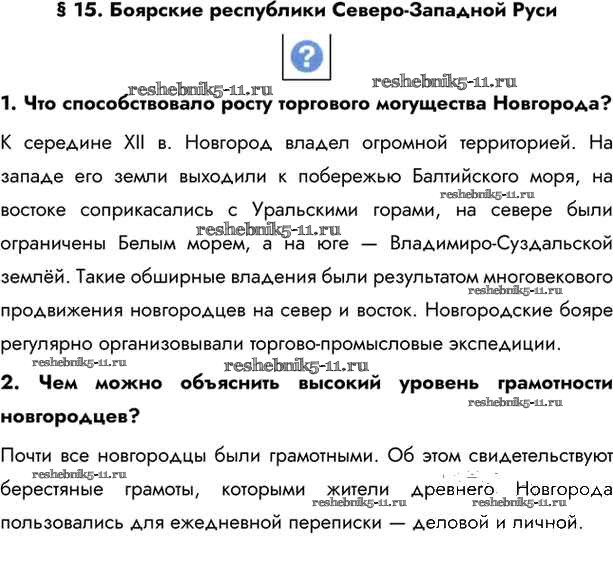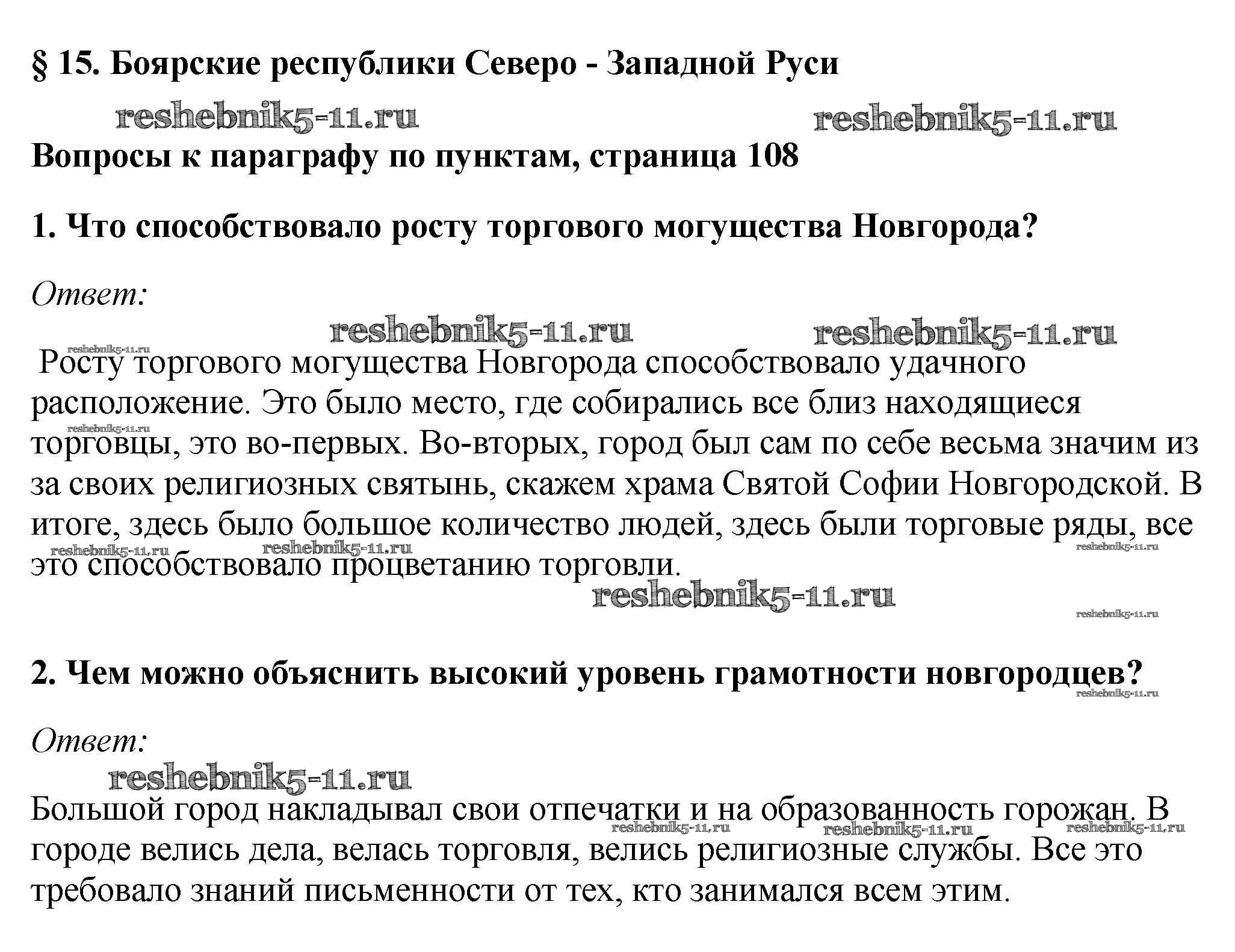 Готовая домашняя работа с ответами по Истории за 6 класс Андреев, Федоров Учебник Вертикаль Дрофа 2016 - §15. Боярские республики Северо - Западной Руси стр.108