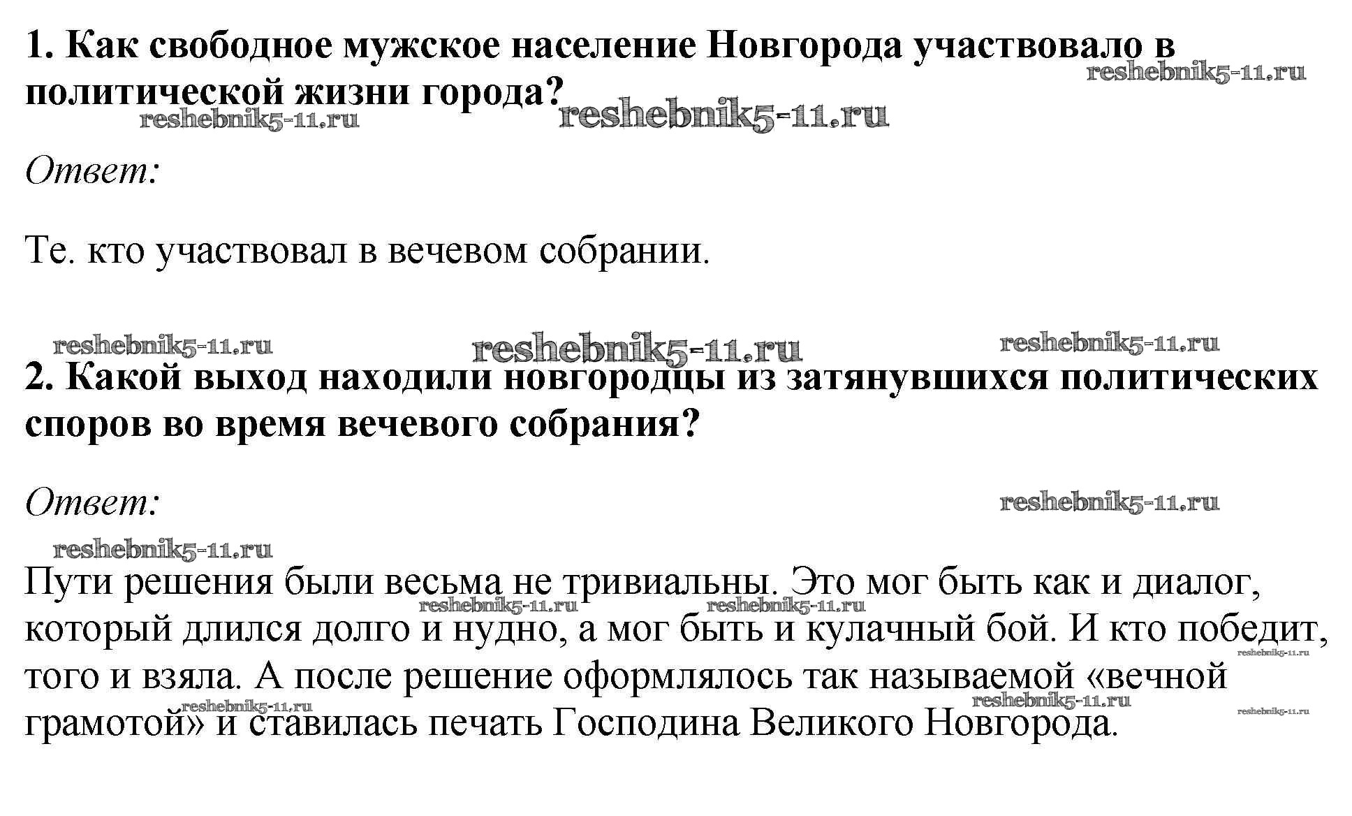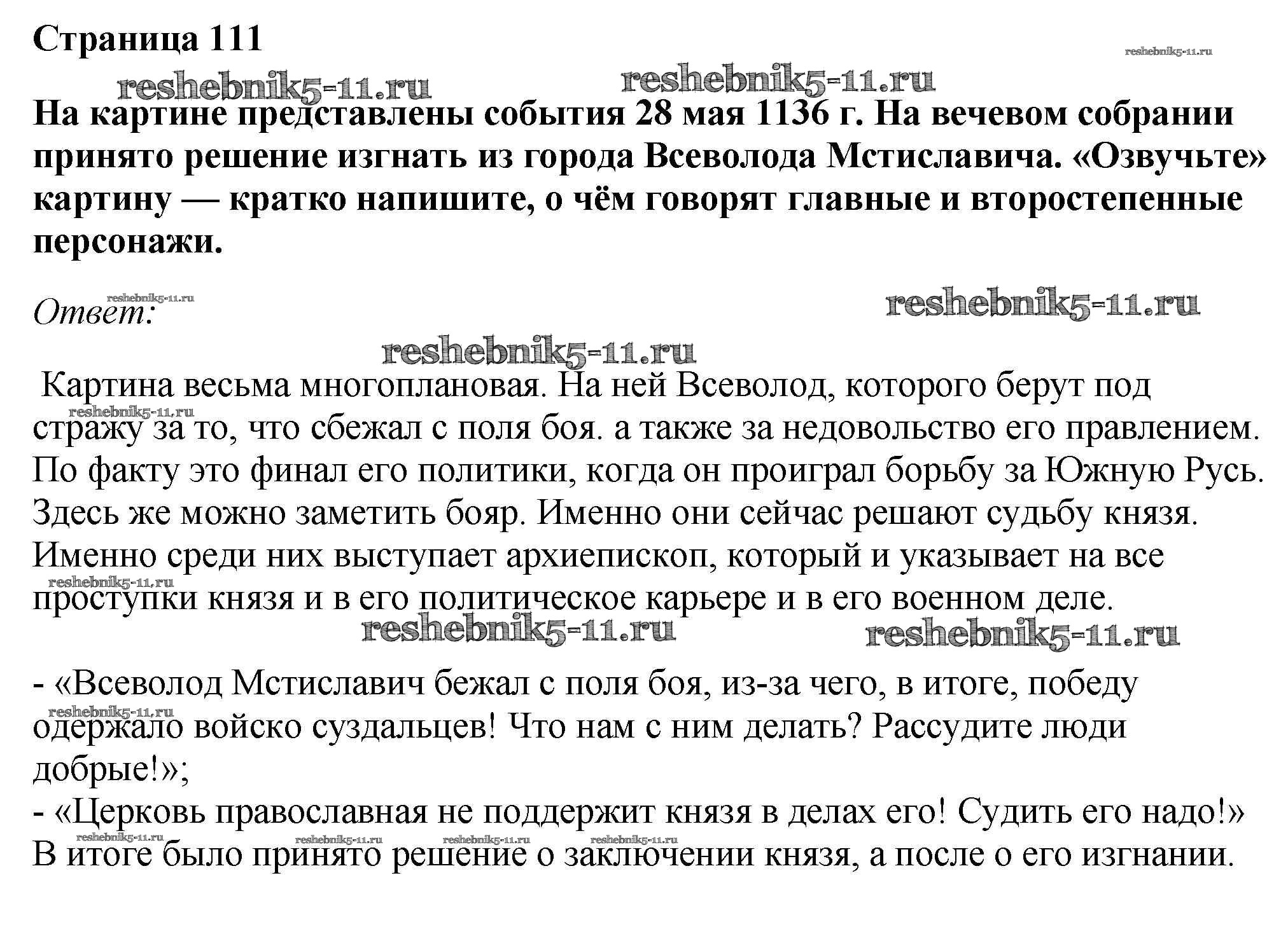 Готовая домашняя работа с ответами по Истории за 6 класс Андреев, Федоров Учебник Вертикаль Дрофа 2016 - §15. Боярские республики Северо - Западной Руси стр.111