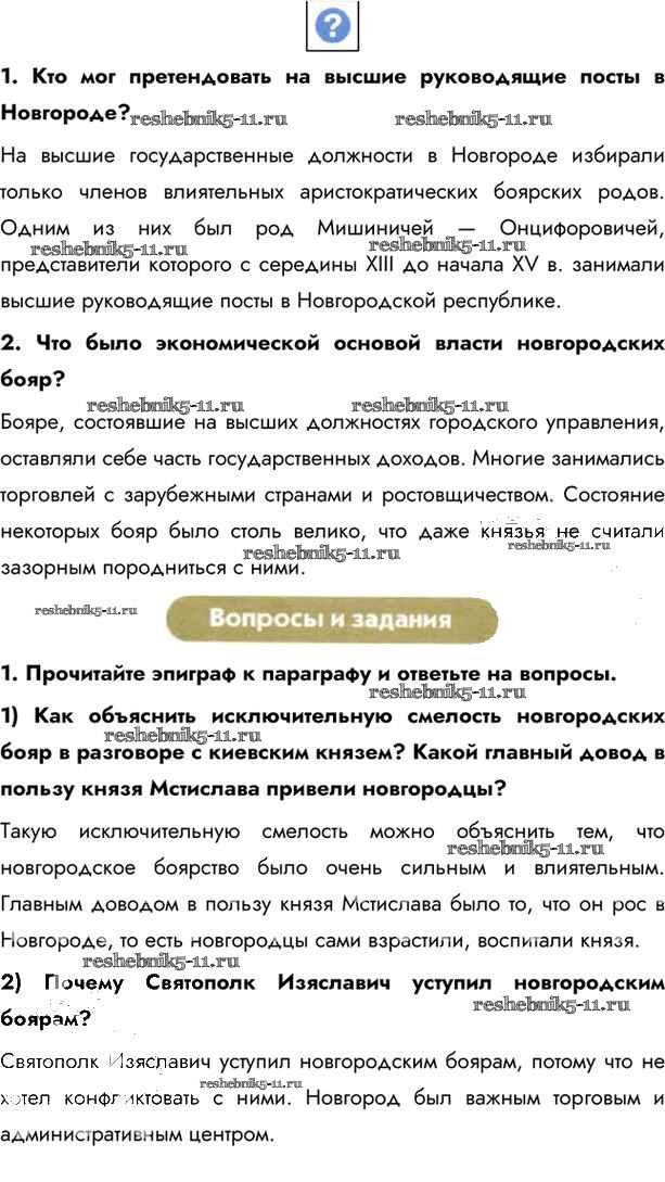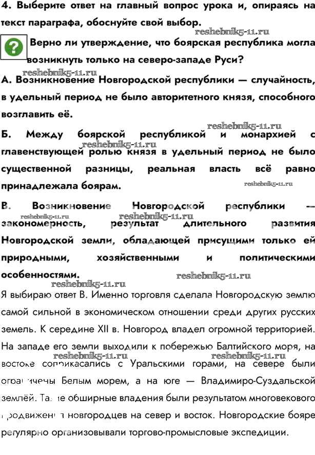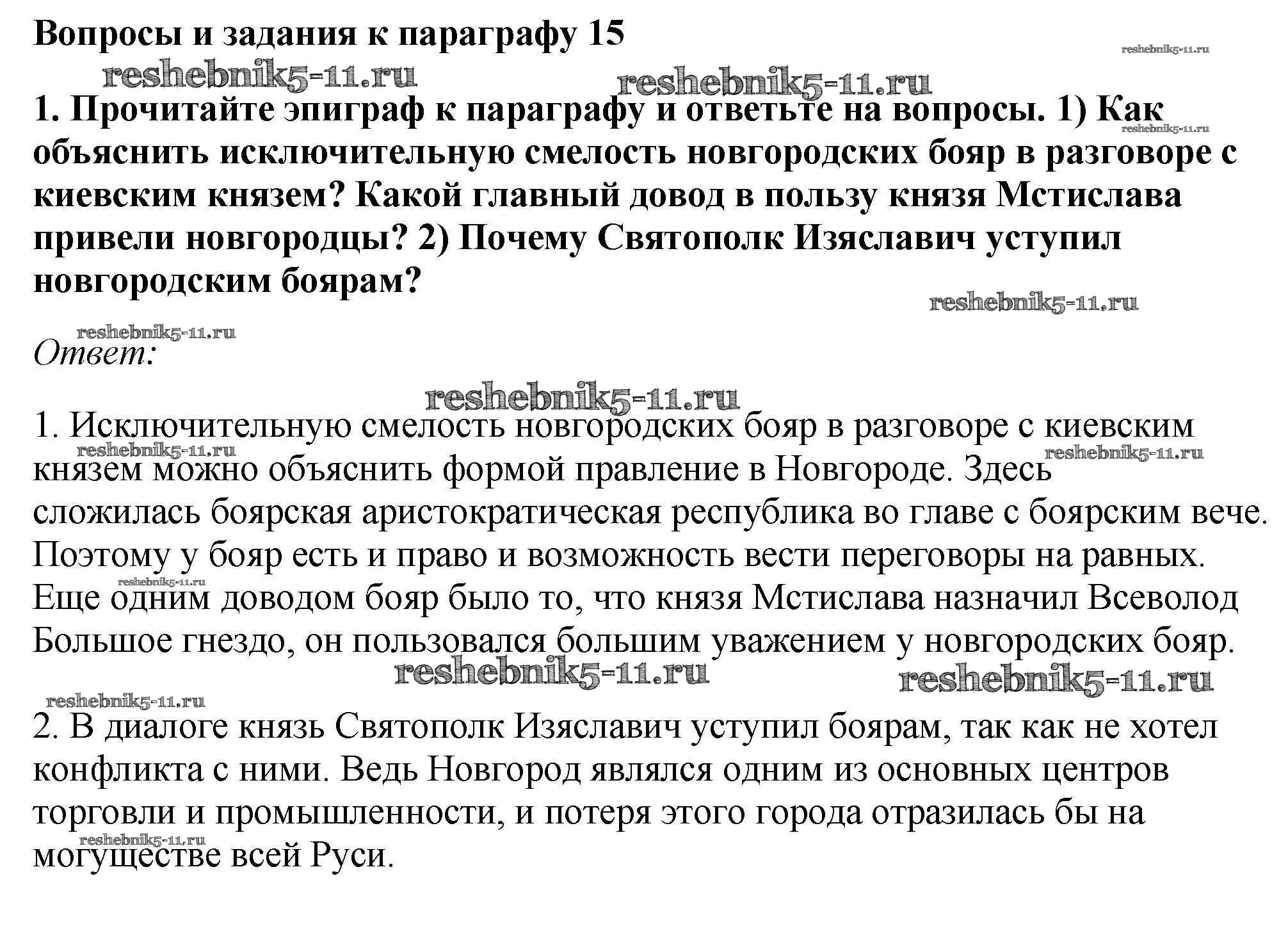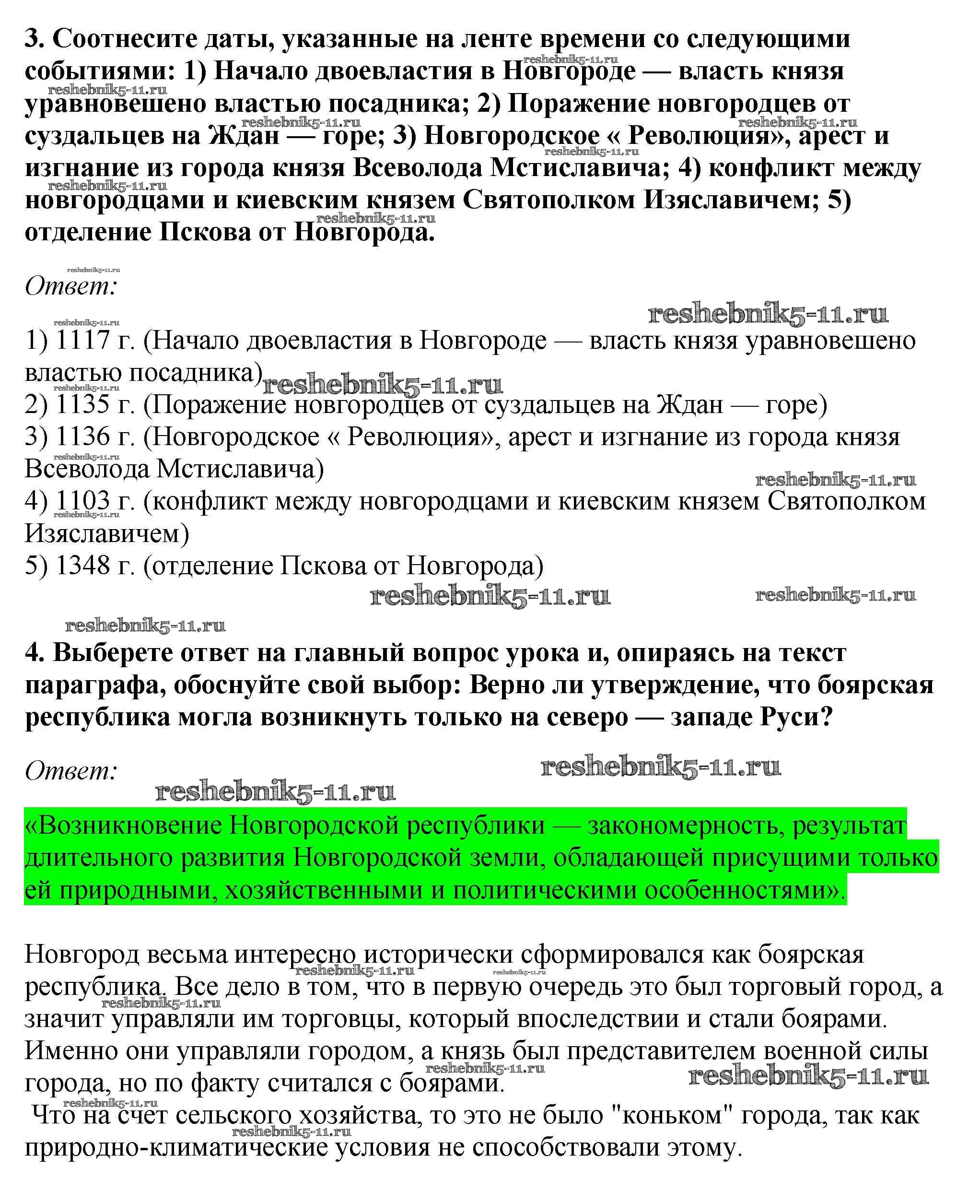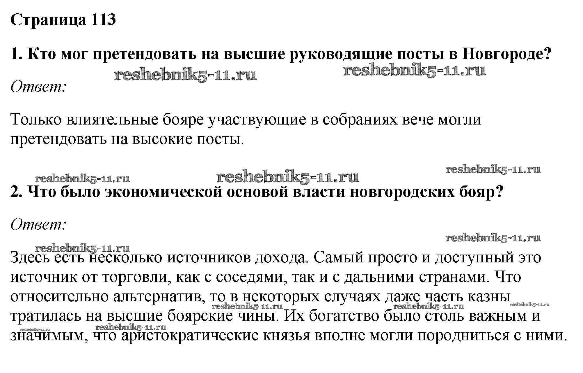 Готовая домашняя работа с ответами по Истории за 6 класс Андреев, Федоров Учебник Вертикаль Дрофа 2016 - §15. Боярские республики Северо - Западной Руси стр.113