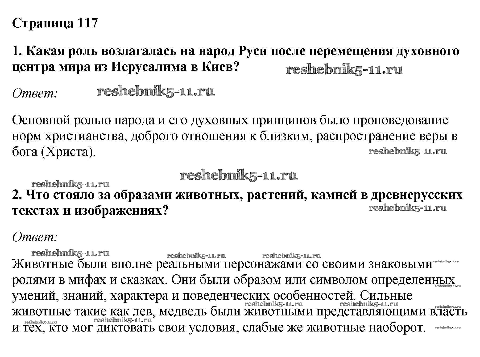 Готовая домашняя работа с ответами по Истории за 6 класс Андреев, Федоров Учебник Вертикаль Дрофа 2016 - §16-17. Культура Руси стр.117