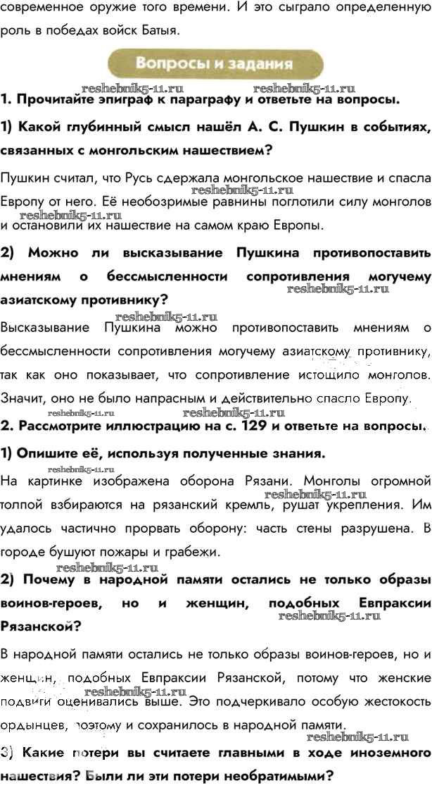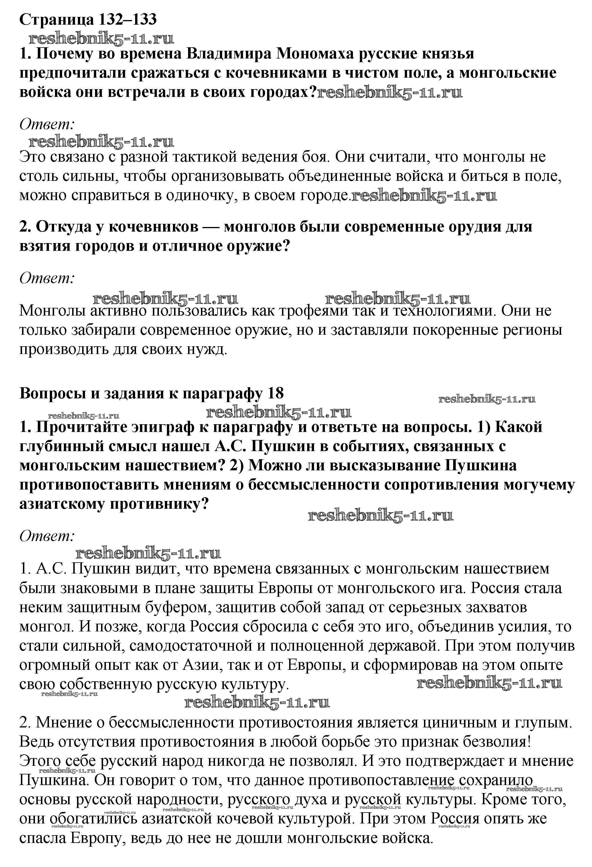 Готовая домашняя работа с ответами по Истории за 6 класс Андреев, Федоров Учебник Вертикаль Дрофа 2016 - §18. Походы Батыя на Русь стр.132